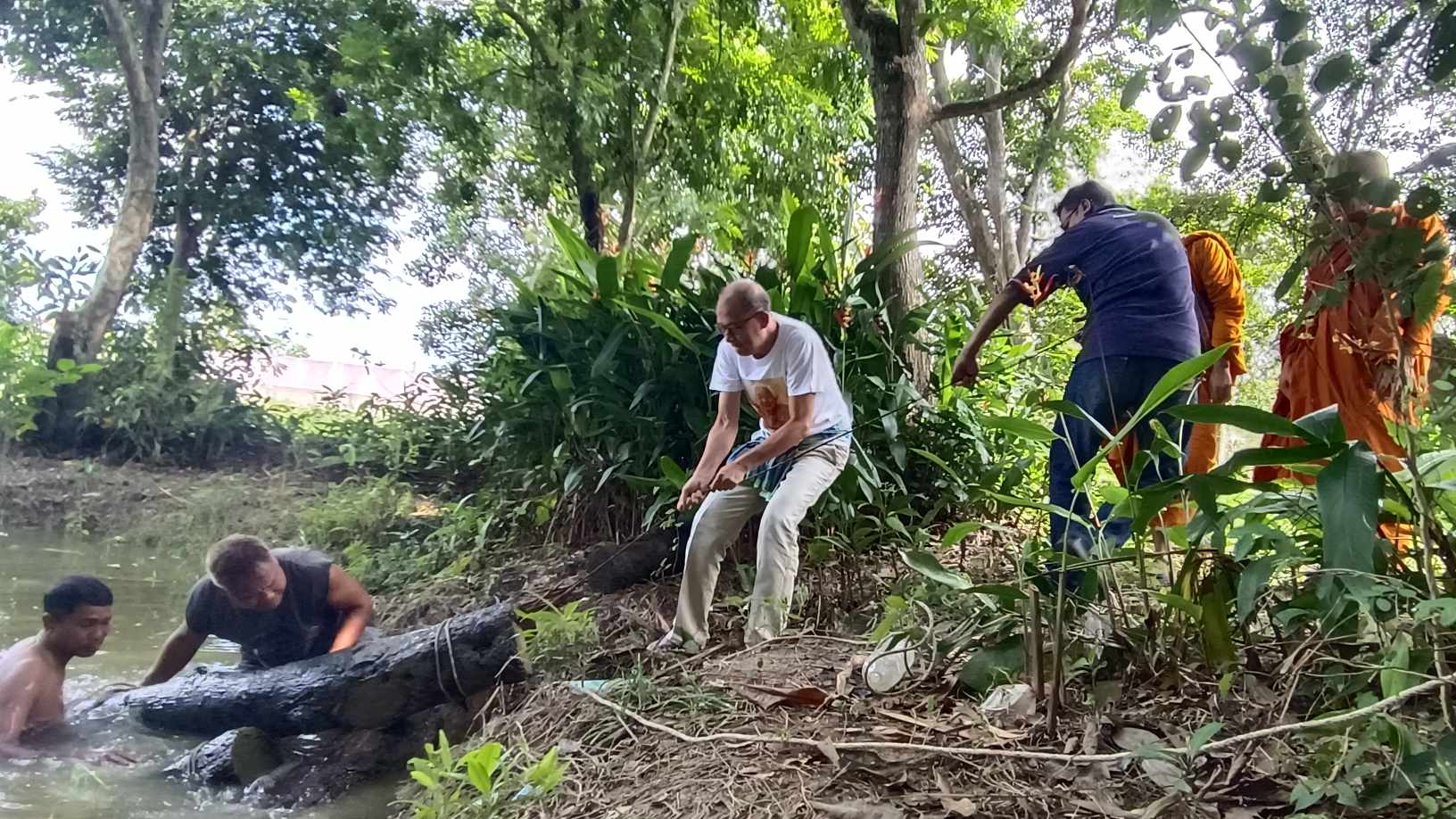 วันนี้นิมนต์ท่านทั้งสอง บอกว่าไปช่วยนำเชิญไม้ขึ้นจากสระมาผึ่งรอแกะ