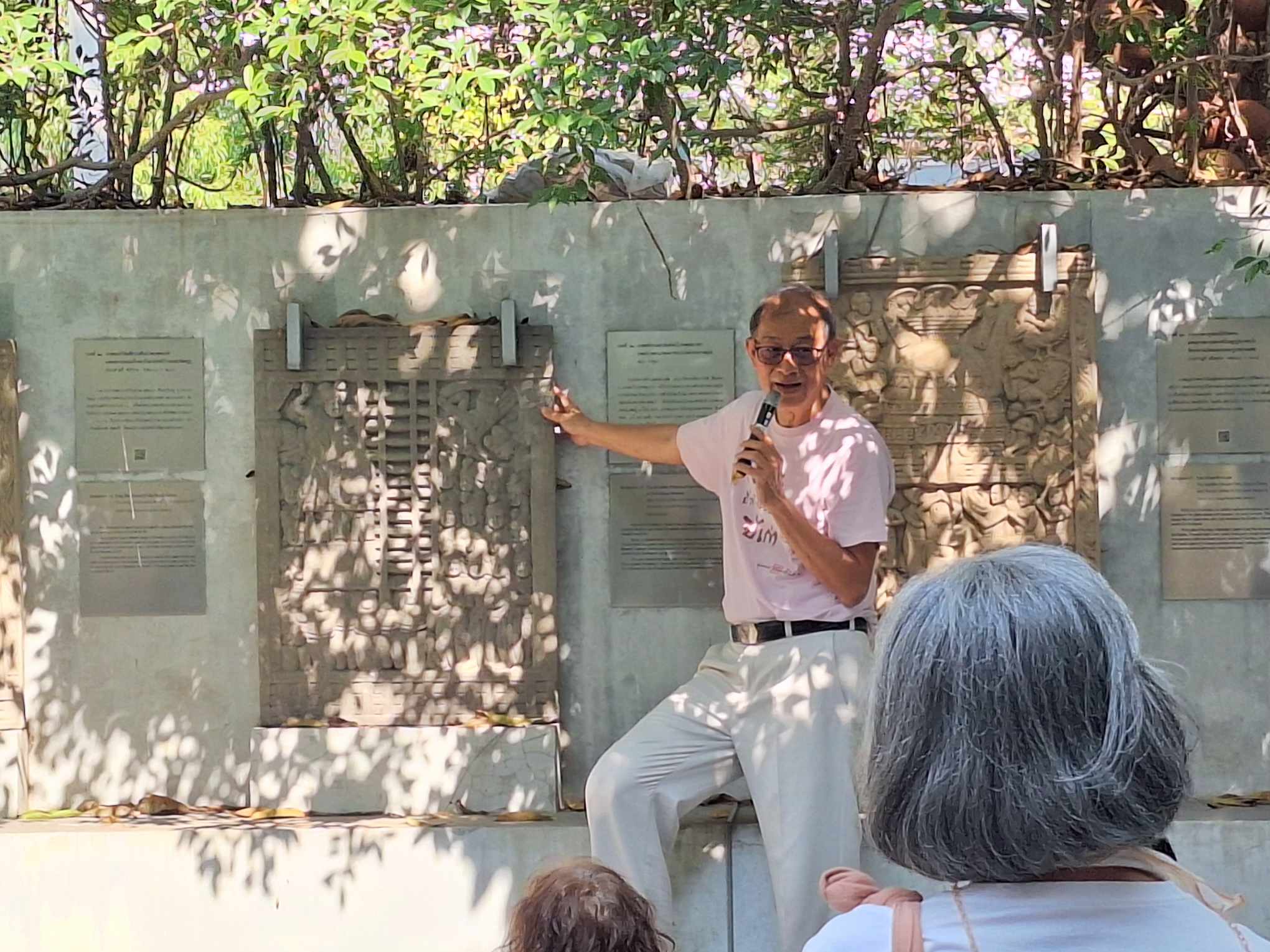 ท้ายสุดที่ชี้ชวนดูจนถึงกับลงนั่ง คือปูนปั้นจำลองหินสลักซุ้มประตูที่สาญจี