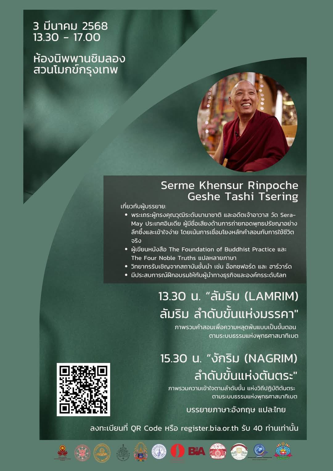 ✨ 3 มีนา–บรรยายธรรมจากGeshe Tashi Tsering พระเถระระดับโลก ในหัวข้อ "ลัมริม ลำดับขั้นเเห่งมรรคา & งักริม ลำดับขั้นแห่งตันตระ"