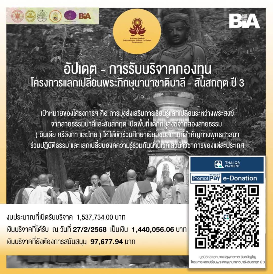 โครงการแลกเปลี่ยนพระภิกษุนานาชาติบาลี_สันสกฤต ( Pali Sanskrit International Bhikkhu Exchange Program ) เป็นโครงการที่มุ่งส่งเสริมการเรียนรู้แลกเปลี่ยนระหว่างพระสงฆ์จากสายธรรมบาลีและสันสกฤต เปิดพื้นที่แด่ภิกษุสงฆ์จากสองสายธรรม ( อินเดีย ศรีลังกา และไทย ) ให้ได้เข้าร่วมศึกษาเยี่ยมชมสถานที่สำคัญทางพุทธศาสนา ร่วมปฏิบัติธรรม และแลกเปลี่ยนองค์ความรู้ร่วมกันผ่านเวทีเสวนาวิชาการของแต่ละประเทศ