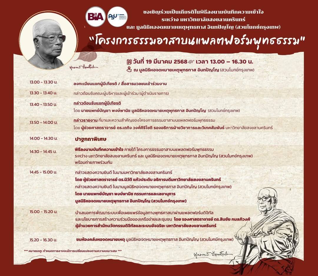 มหาวิทยาลัยสงขลานครินทร์ และ มูลนิธิหอจดหมายเหตุพุทธทาส อินทปัญโญ