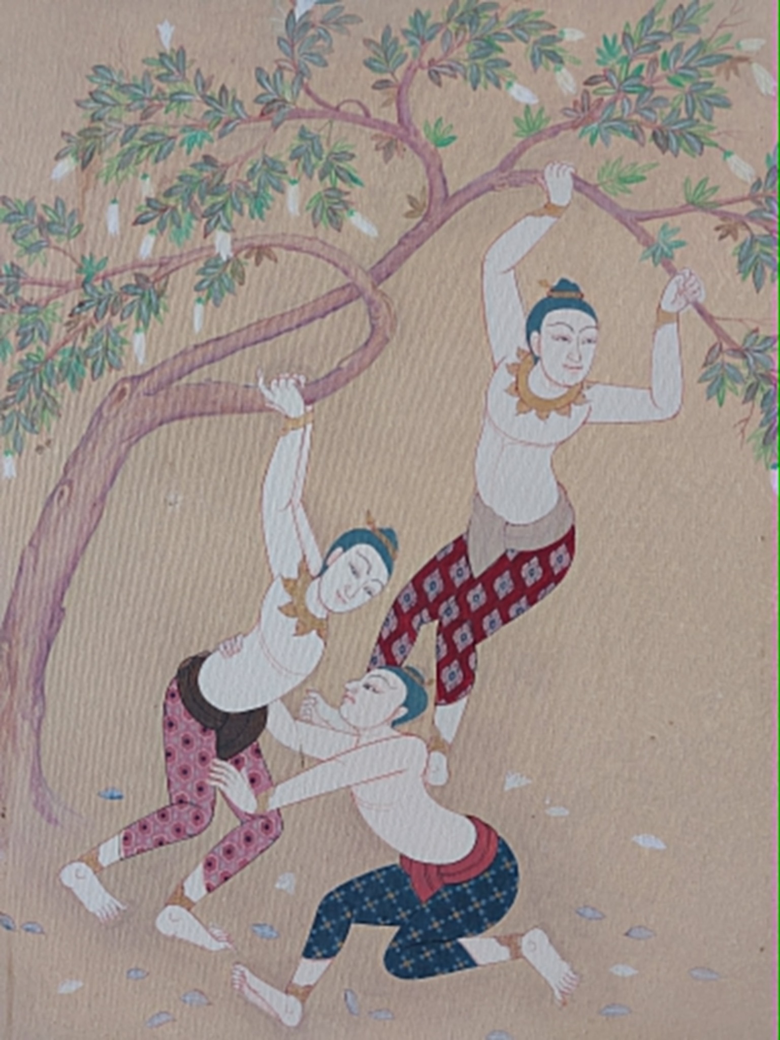 น่าเอารูปที่สามคนต่อตัวขึ้นเก็บดอกจำปาในเรื่องหนวดเต่ามาวาดไว้ด้วย