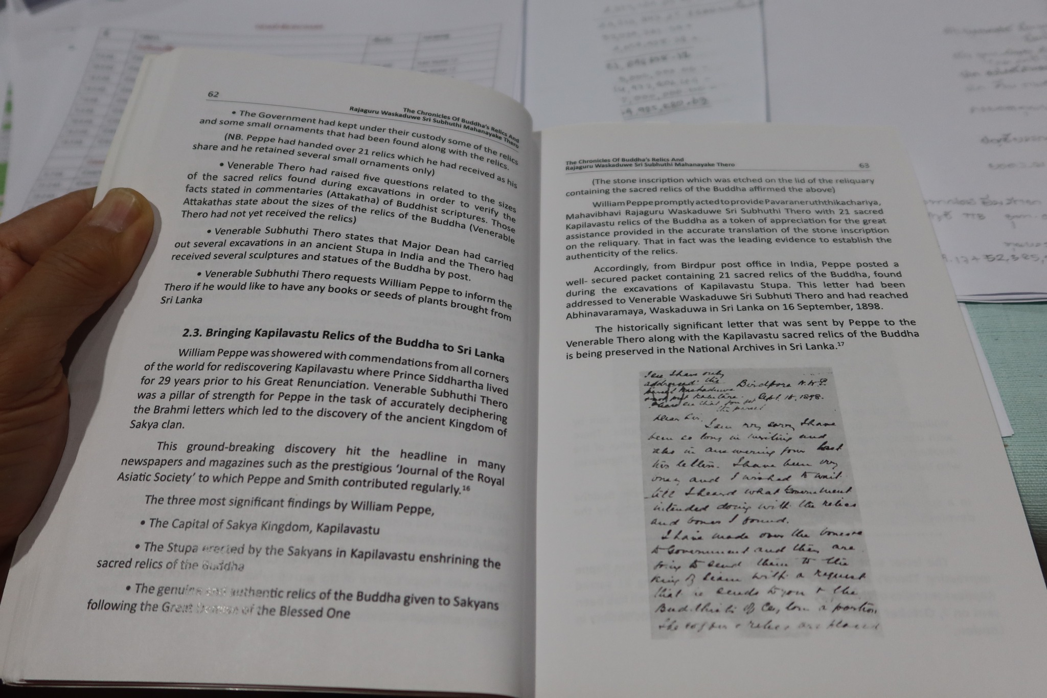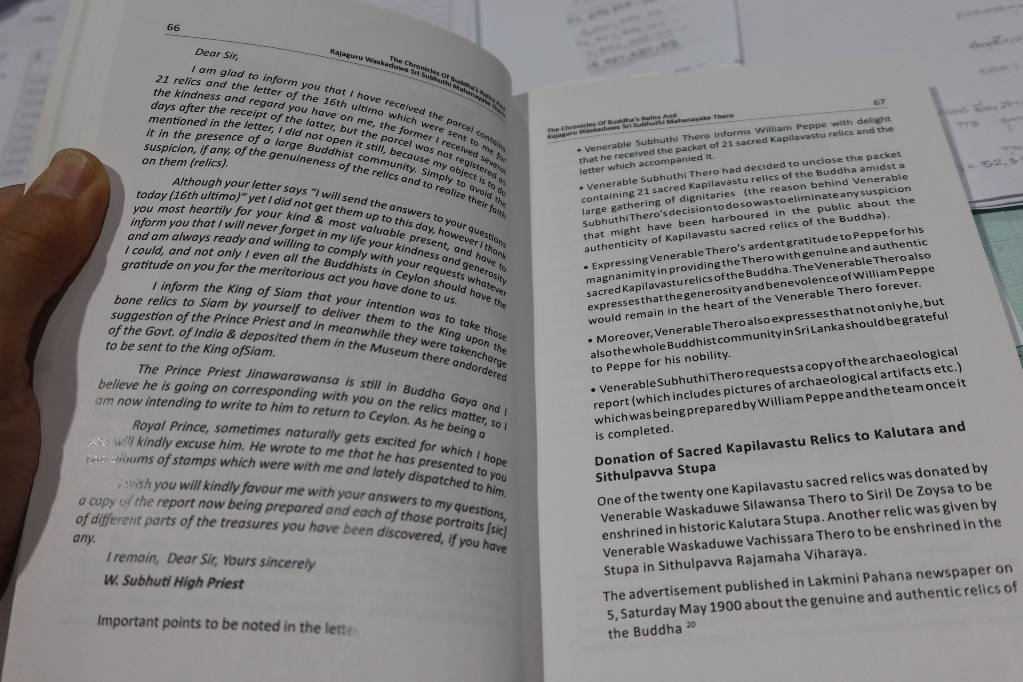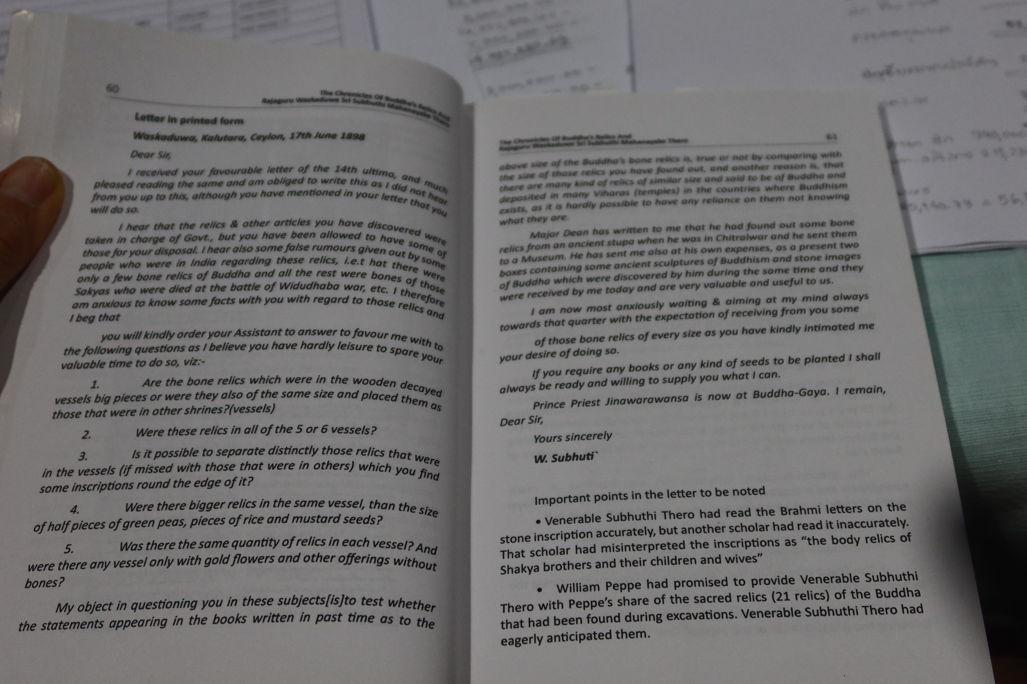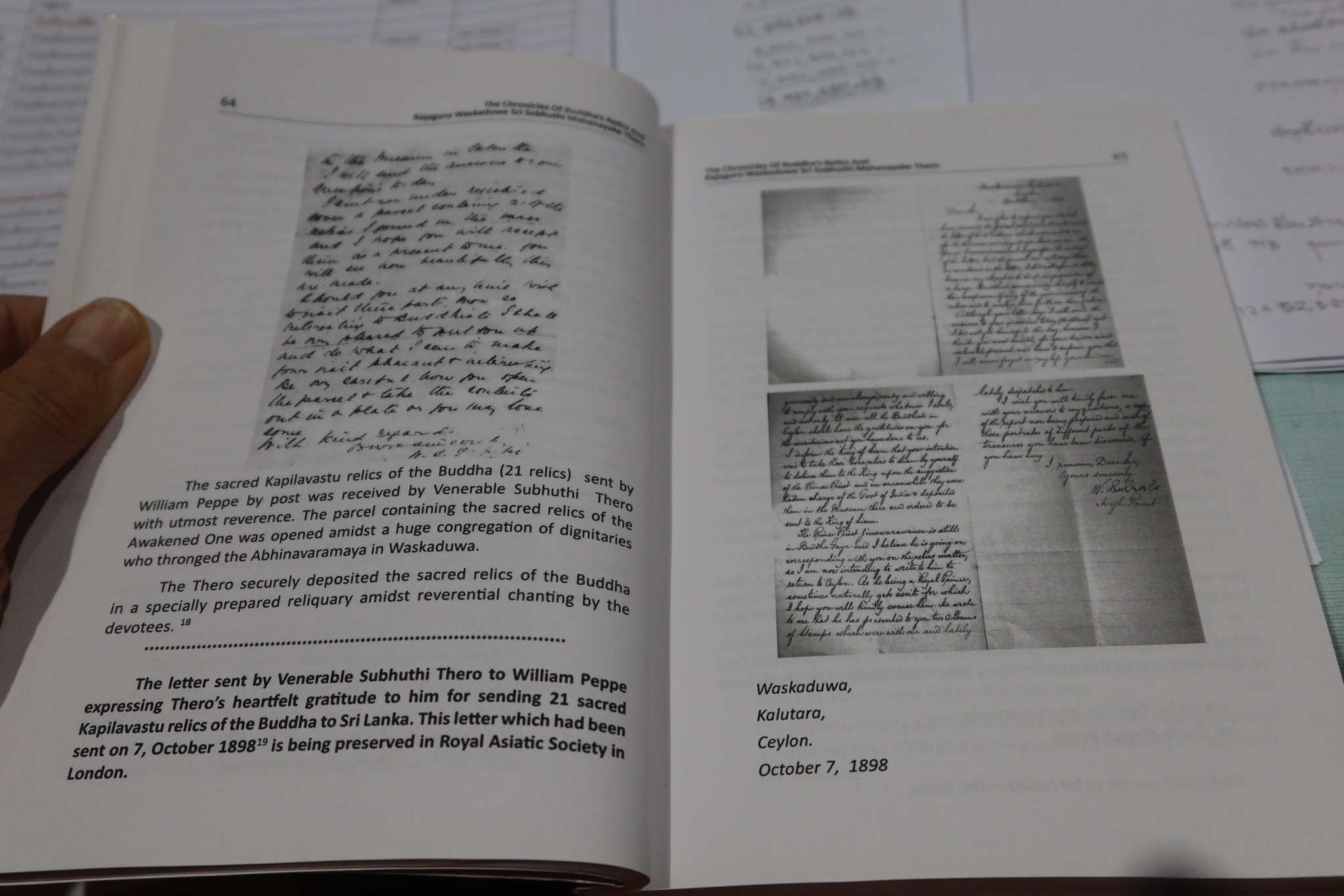 รวมทั้งมีจดหมายจากหลายคนสำคัญ อาทิ Max Muller Rys Davis Cunningham