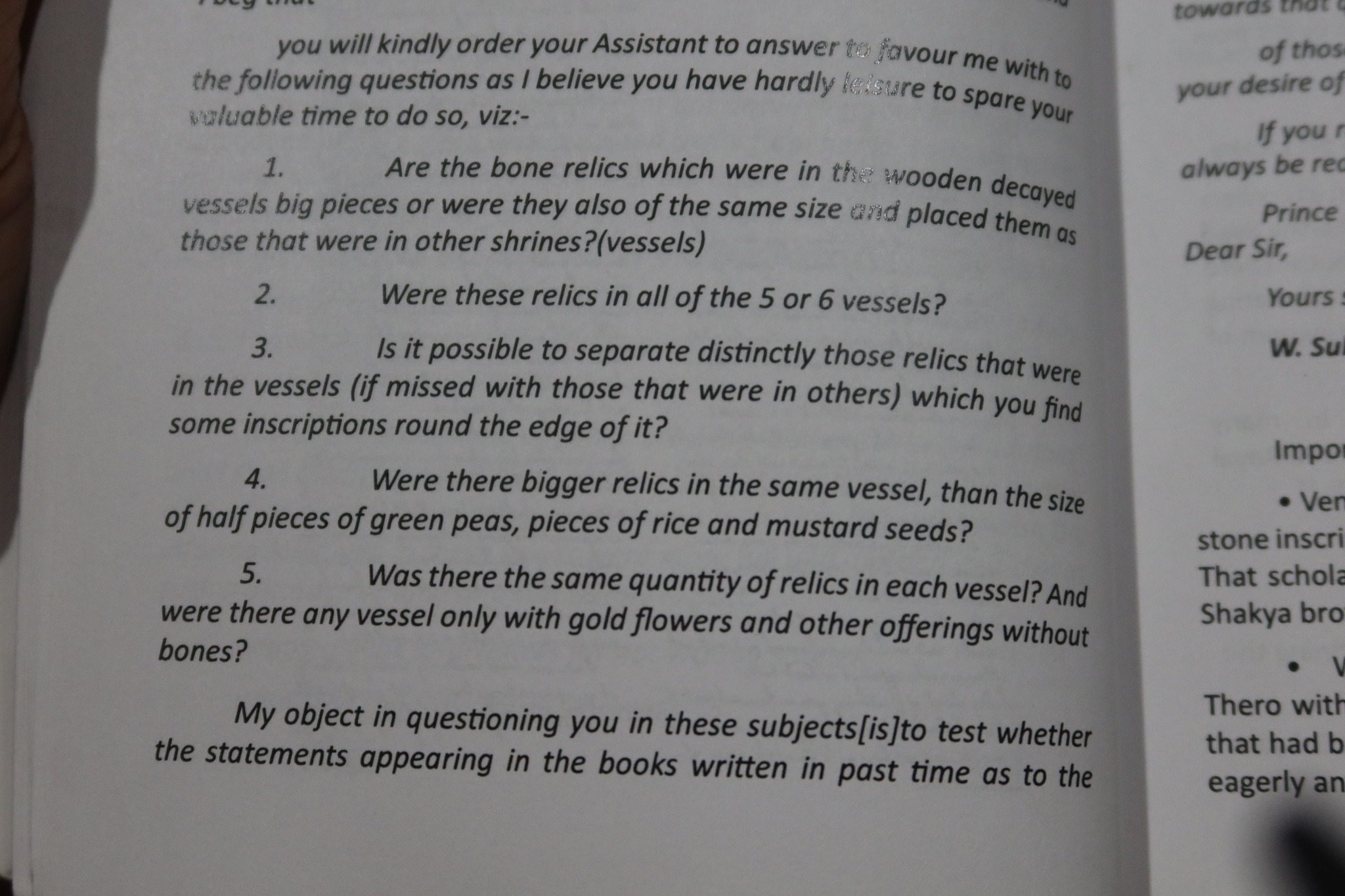 บทที่ ๒ น่าสนใจมาก คือการช่วยอ่านจารึกบนฝาผอบของท่านราชครูสุภูติมหานายกที่นำมาสู่ข้อสรุปว่านี้คือพระบรมสารีริกธาตุ โดยท่านราชครูสุภูติมีหลายคำถามสำคัญไปยังเปปเป้เพื่อสอบทานกับคัมภีร์พุทธ แต่ไม่ได้คำตอบ นอกจากนี้ท่านยังระบุว่างานทั้งหมดนี้ ท่านให้พระชินวรวงศ์ - พระภิกษุพระองค์เจ้าปฤศฎางค์ เป็นผู้ประสานของท่าน เป็นคนนำส่งคำอ่าน ฯลฯ รวมทั้งออกตัวด้วยว่าพระองค์เจ้าปฤศฎางค์อาจทำอะไรไม่เหมาะสมก็ขออภัย กับยังบอกด้วยว่าพระองค์เจ้าปฤศฎางค์อยากขอนำไปถวายรัชกาลที่ ๕ ด้วย ฯลฯ