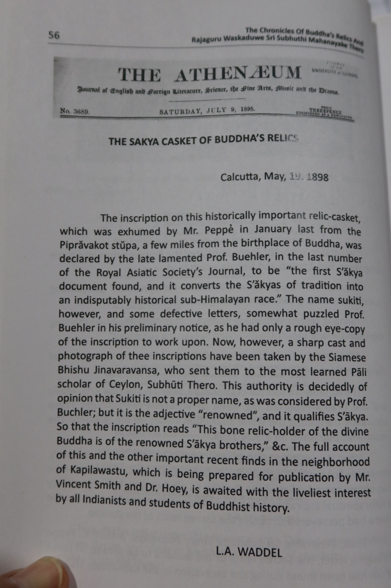 โดยเนื้อหาบทแรกว่าด้วยการขุดค้นพบที่ปิปราหวะ ซึ่งส่วนใหญ่ก็ทราบกันแล้ว