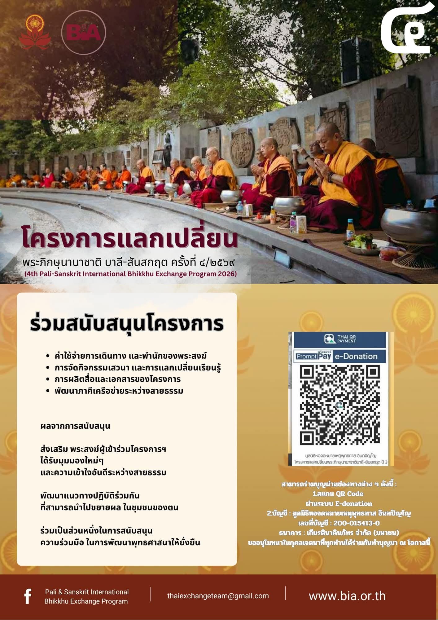 ขอเชิญทุกท่าน ร่วมทำบุญตักบาตร กับ “โครงการแลกเปลี่ยนพระภิกษุนานาชาติ บาลี-สันสกฤต รวม ๑๗ รูป“