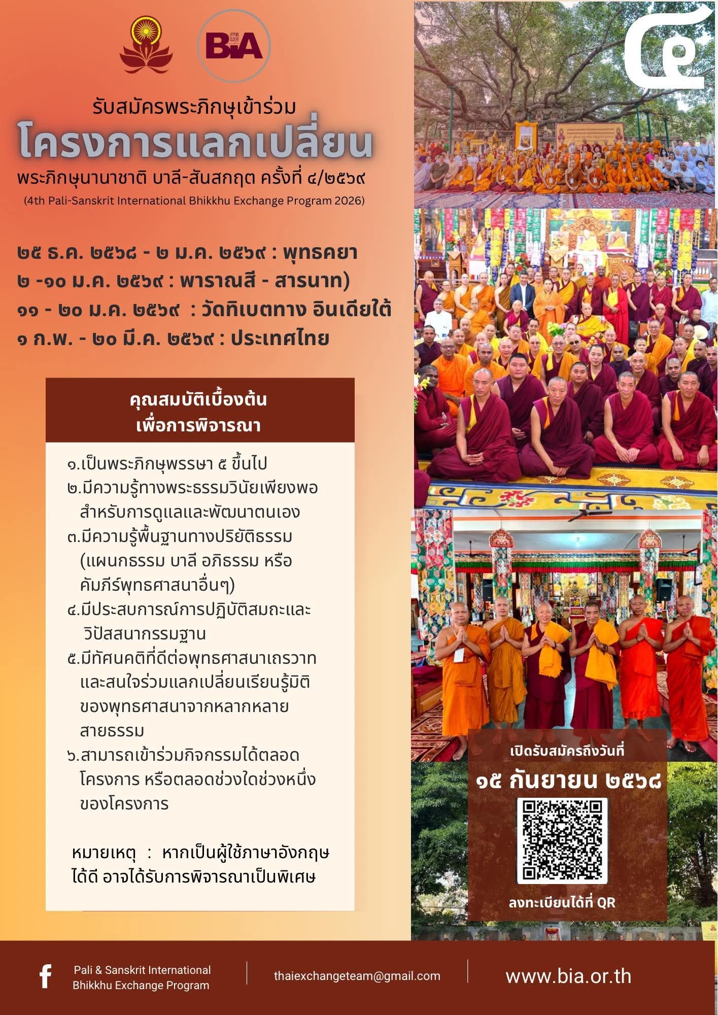 พร้อมเปิดรับสมัครพระเข้าร่วมโครงการแลกเปลี่ยนฯ รุ่นที่ ๔