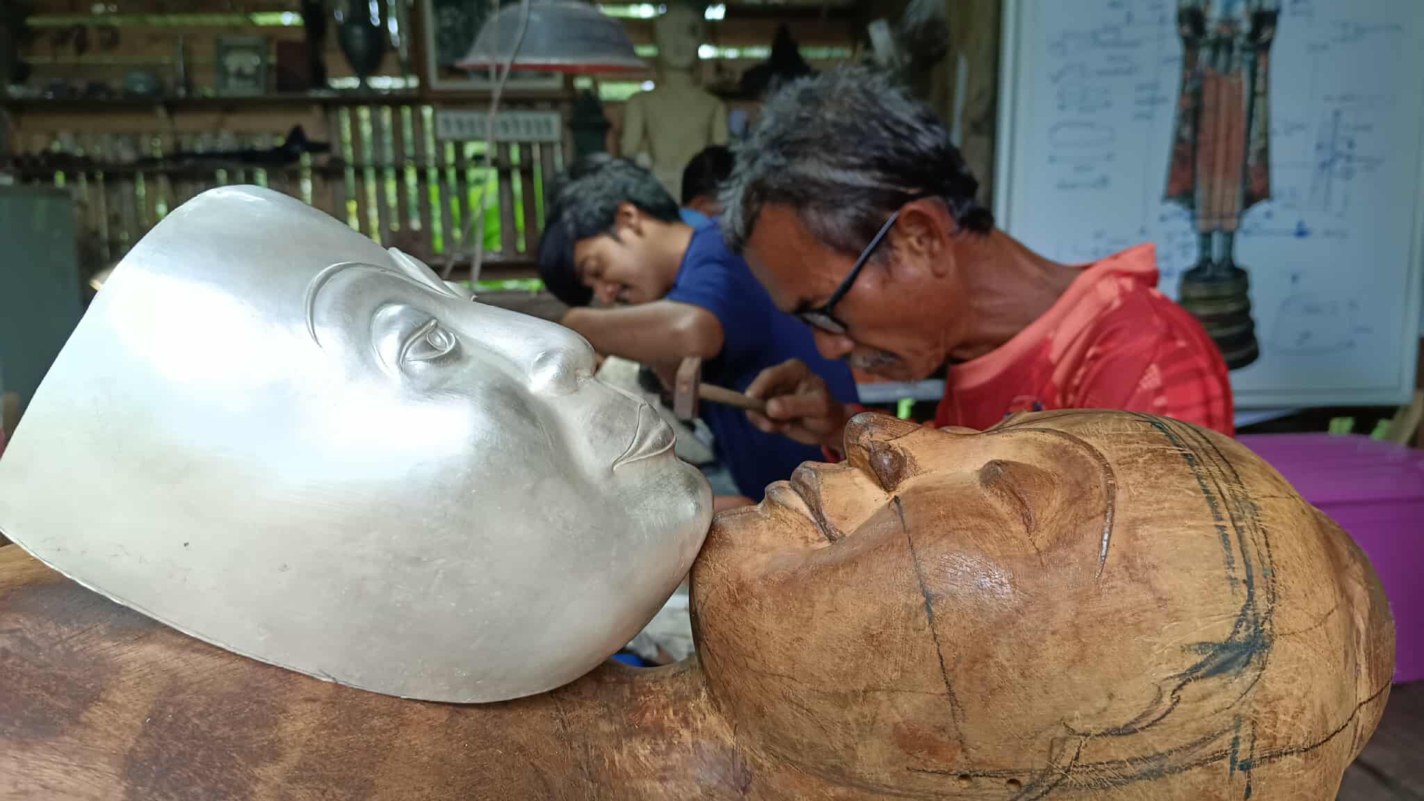 ตั้งแต่กการแกะโกลนไม้โดยสองช่าง เสกสรรค์ คงอ่อน และ ช.แฝด ลายไม้