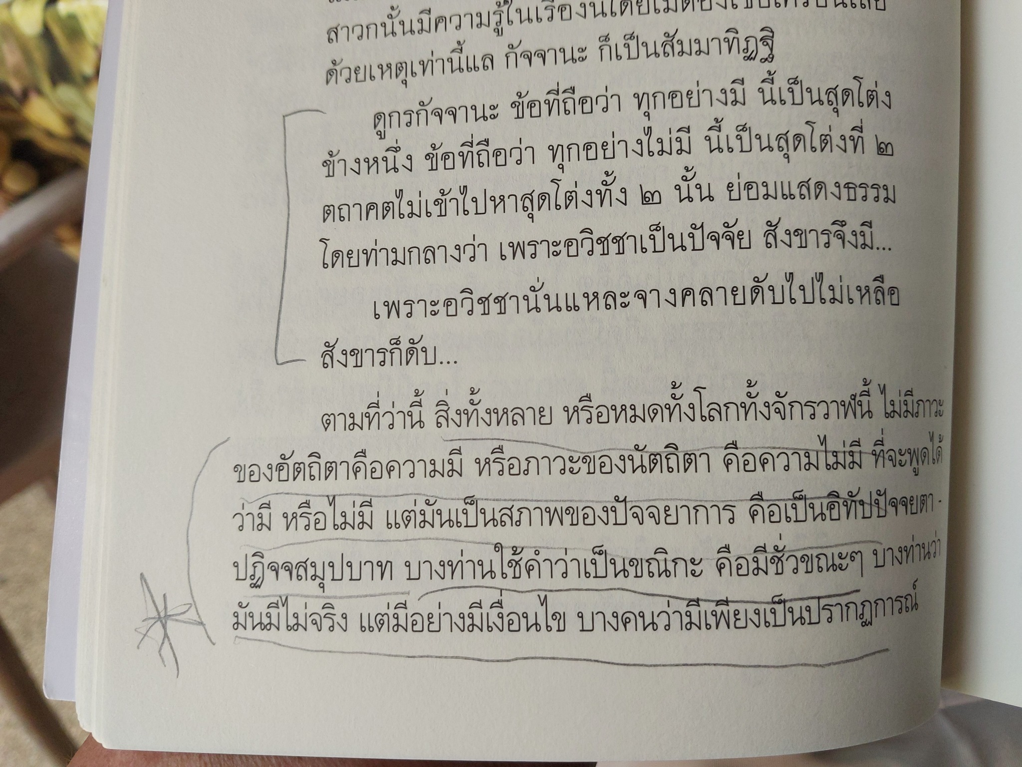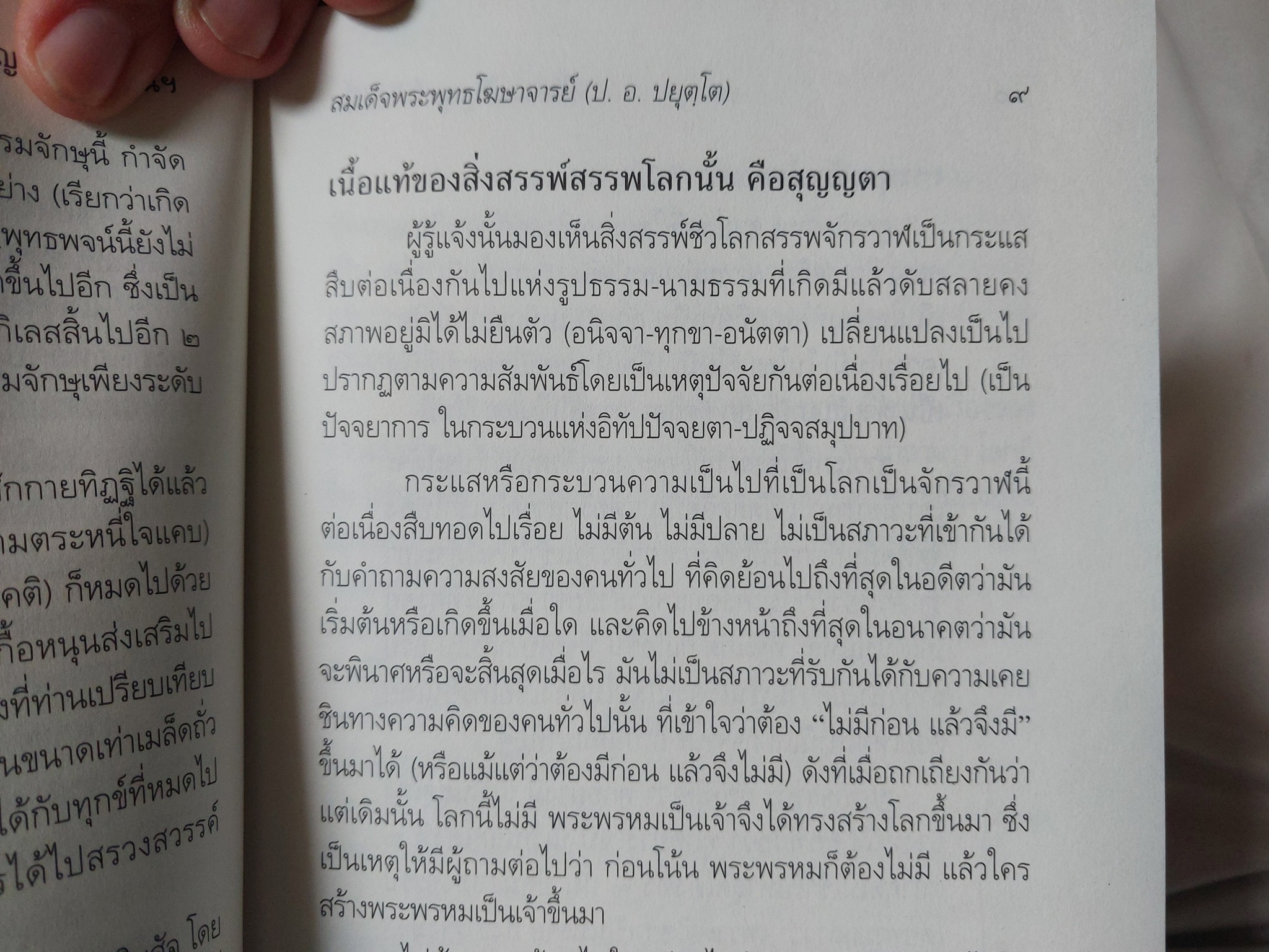 ... ตามที่ว่านี้ สิ่งทั้งหลายหรือหมดทั้งโลกทั้งจักรวาฬนี้ ไม่มีภาวะของ #อัตถิตา คือความมี หรือภาวะของ #นัตถิตา คือความไม่มี ที่จะพูดได้ว่ามีหรือไม่มี แต่มันเป็นสภาพของ #ปัจจยาการ คือเป็น #อิทัปปัจจยตา - #ปฏิจจสมุปบาท บางท่านใช้คำว่าเป็น #ขณิกะ คือมีชั่วขณะ ๆ บางท่านว่ามันมีไม่จริง แต่อย่างมีเงื่อนไข บางคนว่า #มีเพียงปรากฏการณ์