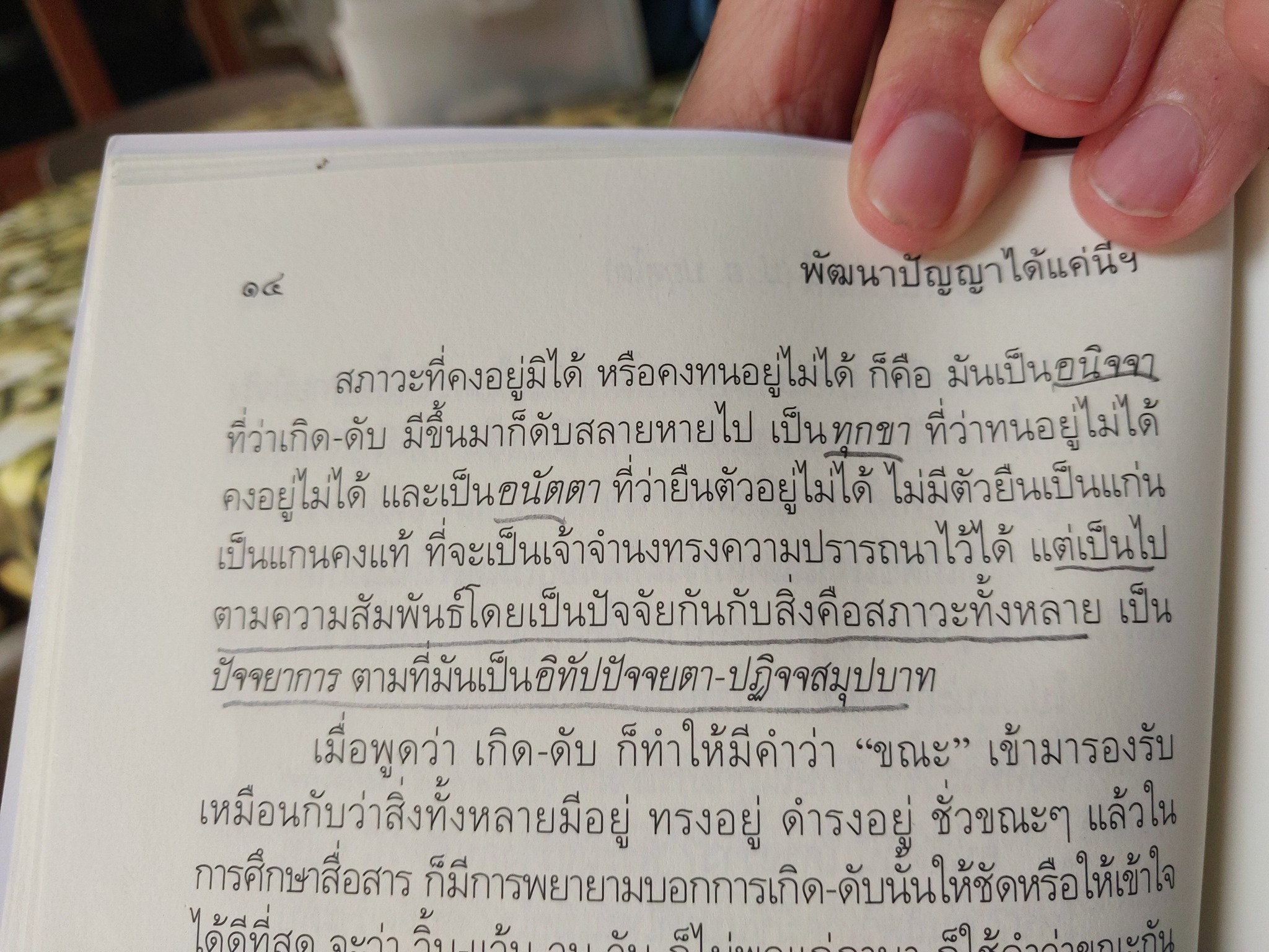 ... สภาวะที่คงอยู่มิได้หรือคงทนอยู่ไม่ได้ ก็คือ มันเป็น #อนิจจา ที่ว่าเกิด-ดับ มีขึ้นมาก็ดับสลายหายไป เป็น #ทุกขา ที่ว่าทนอยู่ไม่ได้คงอยู่ไม่ได้ และเป็น #อนัตตา ที่ว่ายืนตัวอยู่ไม่ได้ ไม่มีตัวยืนเป็นแก่นเป็นแกนคงแท้ที่จะเป็นเจ้าจำนงทรงความปรารถนาไว้ได้ แต่เป็นไปตามความสัมพันธ์โดยเป็นปัจจัยกันกับสิ่งคือสภาวะทั้งหลาย เป็น #ปัจจยาการ ตามที่มันเป็น #อิทัปปัจจยตา-#ปฏิจจสมุปบาท ...