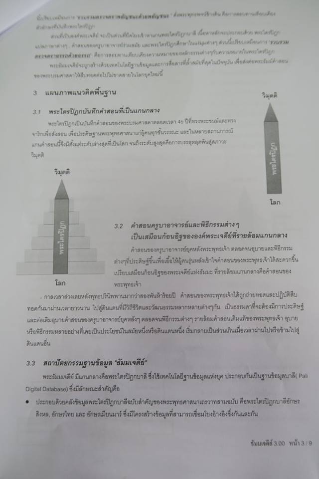 ท่านบอกว่า เคยผ่านการร่วมงาน "World Tripitaka" กับหนังสือชุด "พระบรมสารีริกธาตุ" มาก่อน ตอนนี้ร่วมกันกับคณะที่ส่วนใหญ่เป็นนักวิศวกรรมคอมพิวเตอร์ จะอัญเชิญพระไตรปิฎกบาลี ฉบับภาษาลังกา-พม่า-ไทย มาร่วมไว้ใน "พระธัมมเจดีย์" ดิจิตัล แบบมีส่วนร่วมเพื่อให้เป็นอ้างอิงร่วมกัน โดยจะประสานเชิญนำคำสอนครูบาอาจารย์อื่น ๆ มารายล้อมด้วย อาทิ ของ อ.พุทธทาส อ.บัว อ.ชา ลพ.เทียน ฯลฯ จากนั้นจึงจะขยายให้เป็นระบบเชื่อมโยงของขบวนขับเคลื่อนงานธรรม โดยคณะที่จะทำจะพยายามอย่างยิ่งในทางวิศวกรรมคอมพิวเตอร์ ซึ่งผมไม่รู้เรื่องอะไรมาก แถมห่วงอยู่ไม่น้อยเพราะท่านบอกว่าจะทำแบบไร้ตัวไร้ตน ไม่มีองค์กรใดรองรับ ใครใครร่วมก็มาร่วมกันทำบนระบบกลางที่จะทำออกมา