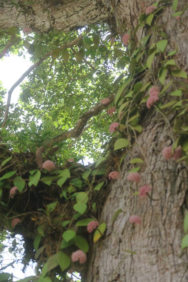 ส่วนเถา โฮย่า หรือ นมตำเลีย ที่ต้นมะม่วงคันต้นใหญ่หน้าโบสถ์นั้น กำลังบานสะพรั่งอยู่พอดี
