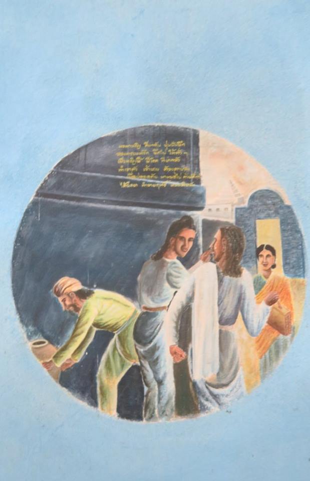 อาจารย์สุชาติเล่าว่า แรกวาดก็วาดกันอย่างนี้ จนตอนหลังจึงลดขนาดภาพลงเรื่อย ๆ เพราะ "มีของมาก" อย่างที่เห็นภาพชั้นล่างส่วนใหญ่ที่บรรจุหลายสิบภาพลงไปในแต่ละบริเวณ