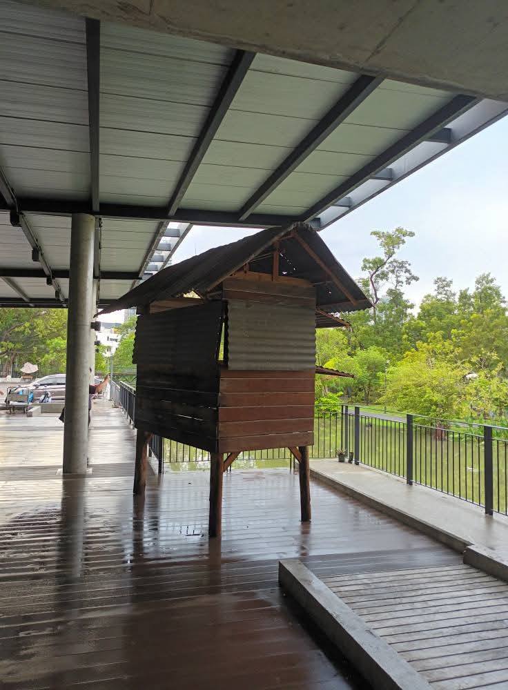 กุฏินี้ก็ค่อย ๆ ขยับออกจากฝั่งริมรั้วไปจนถึงราวระเบียงที่ฝั่งสระตามภาพ
