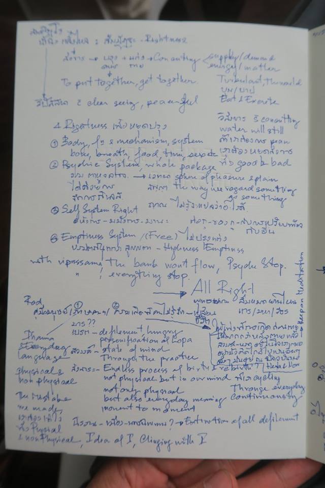 "time to comeback, exchange and move forward" ท่านกล่าวอีกยาวมาก จดได้เต็มหน้า แต่ที่จับใจสุดอยู่ตรงที่ว่า "งานของท่านนั้น beyond inventing but bring back to the Buddha back door ท่านทุ่มสุดชีวิตเพื่อ serve the Buddha สู้กับ 2 extremes, mixing Dhamma & Modern..."