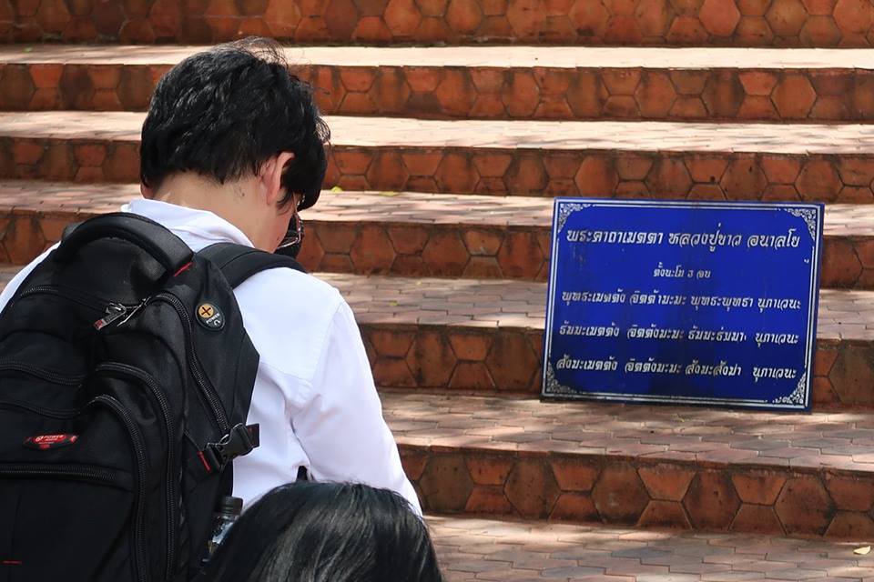 จากนั้นยังร่วมกันสวดคาถาที่หลวงปู่มอบให้ ณ เบื้องหน้าเจดีย์