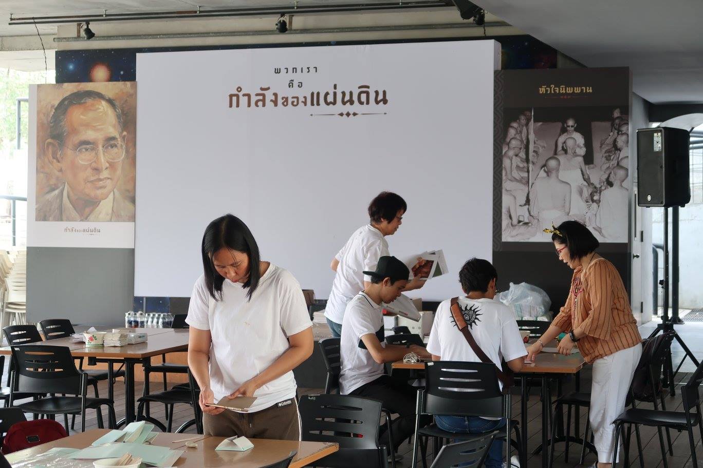 มีหนุ่มน้อย ๒ คนถามว่า อาสาสมัครพับกระทงไปทางไหนครับ ?