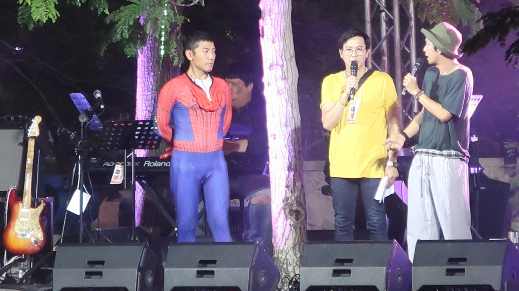 ที่สวนโมกข์นั้น เราลองทำงานเบา ๆ กันในลักษณะตลาดบุญ ทุกวันเสาร์ ๕ (เฉพาะเดือนที่มี) ทำไปทำมา ที่ว่าจะเบากลายเป็นหนักขึ้น ๆ อย่างเช่นกำลังนี้เพราะมีศิลปินไม่รู้กี่สิบชีวิต มาจัดคอนเสิร์ตทำบุญหวังผลต่อเนื่องจากตลอดวันที่มีติดตลาดอะไรบ้างผมก็ไม่อาจรู้ได้ทั้งหมดยกให้มูลนิธิเพื่อเด็กกำพร้าที่พัทยาที่คุณพ่อบาทหลวงท่านตกกระไดพลอยกระโจมมีคนเอาทารกมาวางไว้หน้าอาราม จนทำมา ๔๕ ปีแล้วครับตะกี้ลงไป เจอมนุษย์แมงมุมบนเวที กับเจ้าการ คุณเจี๊ยบ วรรธนาสั่งว่า ๓ ทุ่ม ห้ามไปไหน ให้รอขึ้นเวที " ครับ ๆ "