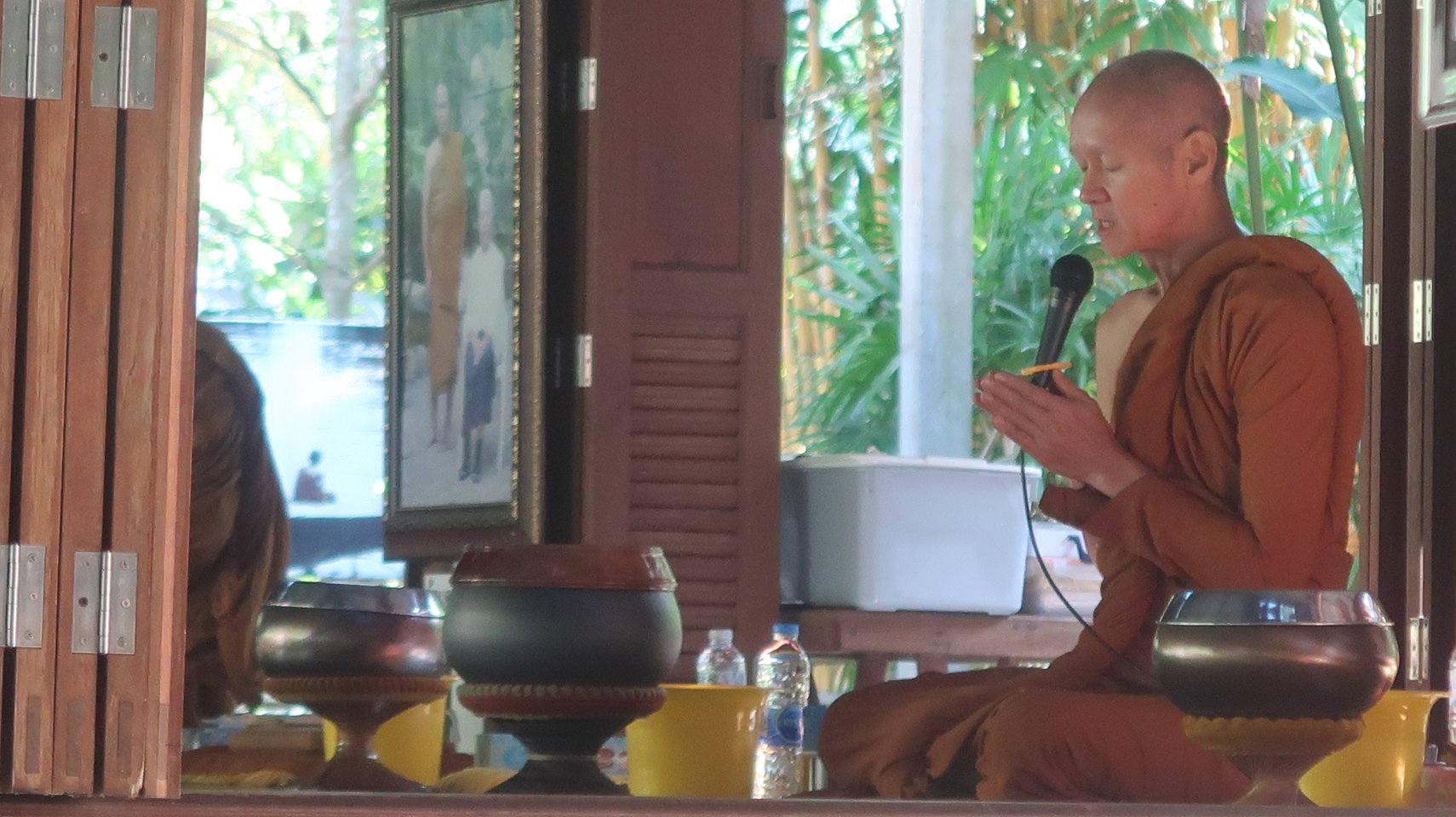 การจัดคณะไปงานโยมแม่ท่าน อ.สุธรรม สุธัมโม ที่ระยองวานนี้นั้นน้อง ๆ ที่สวนโมกข์ช่วยกันจัดออกมาเป็นบุญจาริกน้อย ๆ ร่วม ๔๐ ชีวิต ออกจากสวนโมกข์กรุงเทพตั้งแต่ ๐๖๑๕ น. ประกอบด้วย ทีมบุญจาริก และ ธรรมภาคีจากหลากหลายกลุ่มรวมทั้งหน่วยประสานจัดการต่าง ๆ ด้วยแรกถึงที่วัดป่าอัมพวัน แม้ท่าน อ.จันทร์ดี ยังไม่กลับจากอินเดีย แต่บรรยากาศของวัด เช้่าวันพระวานนี้นั้นผู้คนมากมาย กำลังนั่งสมาธิ แล้วกล่าวประกาศวันอุโบสถร่วมนั่งสมาธิเจริญจิตภาวนา ร่วมสมาทานศีล ๘ ร่วมถวายภัตตาหาร ร่วมฟังธรรมรับพรจนอิ่มเอมเปรมใจประมาณนี้