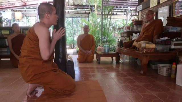 ถึงวัดป่าบุญล้อม กราบหลวงพ่อแล้วจึงเริ่มร่วมหมู่เตรียมการบรรพชา ๑๓ เณรครับ