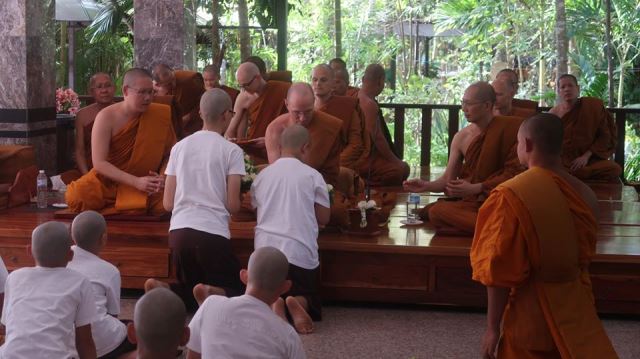 ชั่วขณะที่ผมเฝ้าดูการบรรพชา ๑๓ เณรเมื่อวานนี้นั้นอดสวนคำสอน มีอาการอิจฉาลูกหลานเณรเหล่านี้ไม่น้อยว่าได้รับสิ่งสุดดีนี้ ตั้งแต่นี้กันแล้วเลยหรือ ? ต่างกับเรามาก ที่กว่าจะแสวงหาและรู้สึกว่าเจอก็จะ ๓๐ ขวบเข้าให้แล้วหลังการซักซ้อมจนกระทั่งหลวงปู่อินสม ผู้อาวุโสสูงสุดกรุณาลงมาร่วมสังฆกรรมนี้และท่าน อ.เกวลี แห่งสังฆะป่านานาชาติพร้อมคณะมาถึงภาพมหาสังฆะน้อมกราบองค์หลวงปู่นั้นงามนักจากนั้นจึงกราบหลวงพ่อปุ้มและท่านเกวลี องค์อุปัชฌาย์ แล้วกระบวนการขอบรรพชาก็เริ่มต้นตามลำดับ โดยผมนั้น เลือกยืนเฝ้าดูอยู่ด้านหลังมีรูปพระพุทธองค์ขาวพิสุทธิ์เป็นฉากหน้าอดนึกถึงเมื่อครั้งพระพุทธองค์ทรงประทานบรรพชาแก่พระราหุลเมื่อ ๒๖๐๐ ปีก่อนโน้นไม่ได้