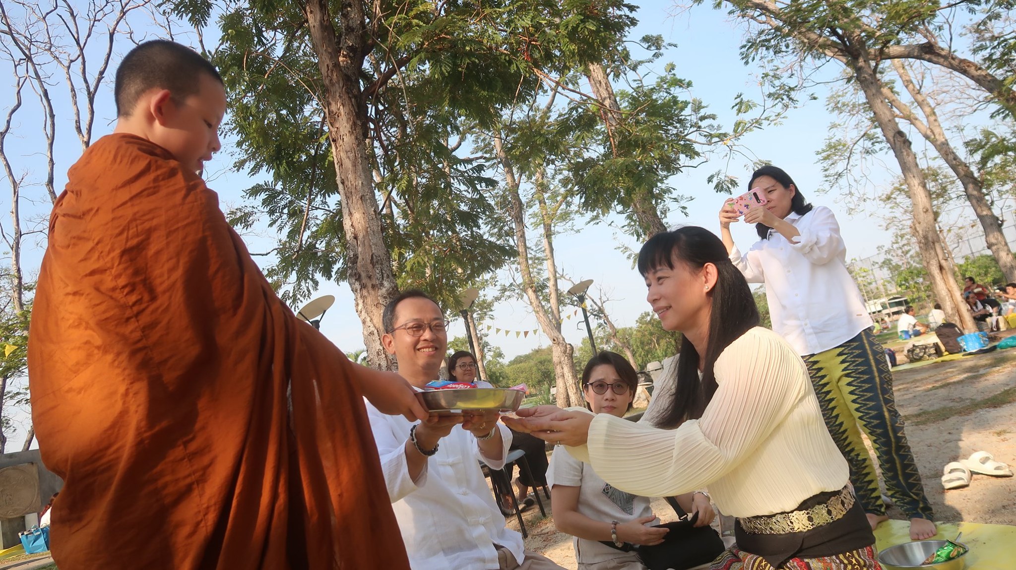 เช้านี้ เจอเสื้อปีใหม่ตัวแรกของสวนโมกข์กรุงเทพ เมื่อ ๙ ปีก่อนก็เลยใส่ซะส่วนกลอนรับปีใหม่นี้ เจอบนหนังสือของธรรมบูชา เมื่อ ๒๕๑๐ กว่า ๆก็เลยอกไว้ และได้ใช้อ่านนำอธิษฐานที่ลานหินโค้ง สวนพุทธธรรม ตอนกำลังจะข้ามปีเมื่อคืนนี้ แล้วอ่านอีกทีตอนจะใส่บาตรเมื่อเช้าส่งสัยใส่บาตรปีใหม่ที่สวนโมกข์กรุงเทพ จะกลายเป็นอีกกิจไม่ธรรมดาจากที่แค่จัดเพื่อให้พระท่านได้มีฉัน ก่อนส่งท่านกลับวัดกลายเป็นว่าคนมากขึ้น ๆ บรรยากาศก็ดีมากมาย เฉพาะเด็กวัดคอยดูแลบาตรพระเณรนั้น สวยมากกับอาสาช่วยกันนัดของใส่บาตรเข้าที่ เพื่อส่งต่อวัดเหล่าอาภรณ์ถวายท่านมหา ชุมพร รำไพ ใช้ใกิจการของวัดและชุมชนที่นั่นถือเป็นการใส่บาตรได้บุญหลายชั้นเลยครับส่วน ๕ เณรน้อยที่ค้างปีมาสึกวันนี้นั้นผมแนะให้เอาของก้นบาตรให้พ่อให้แม่กินกันด้วยครับ ถ่าย ๆ มาประมาณนี้ สวยดี ขออนุญาตแจกนะครับ และช่วยบอกต่อบุคคลในภาพกันด้วยนะครับผม