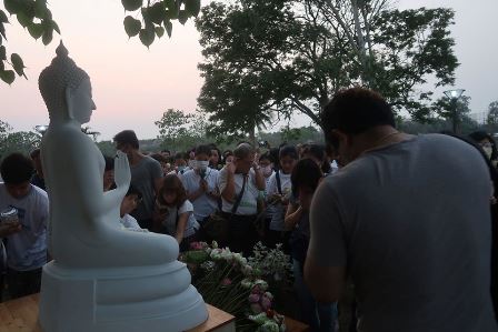 พอดีร่วมเวียนเทียนกับพี่น้องพุทธศาสนิกชน และ ๓ น้องสาว