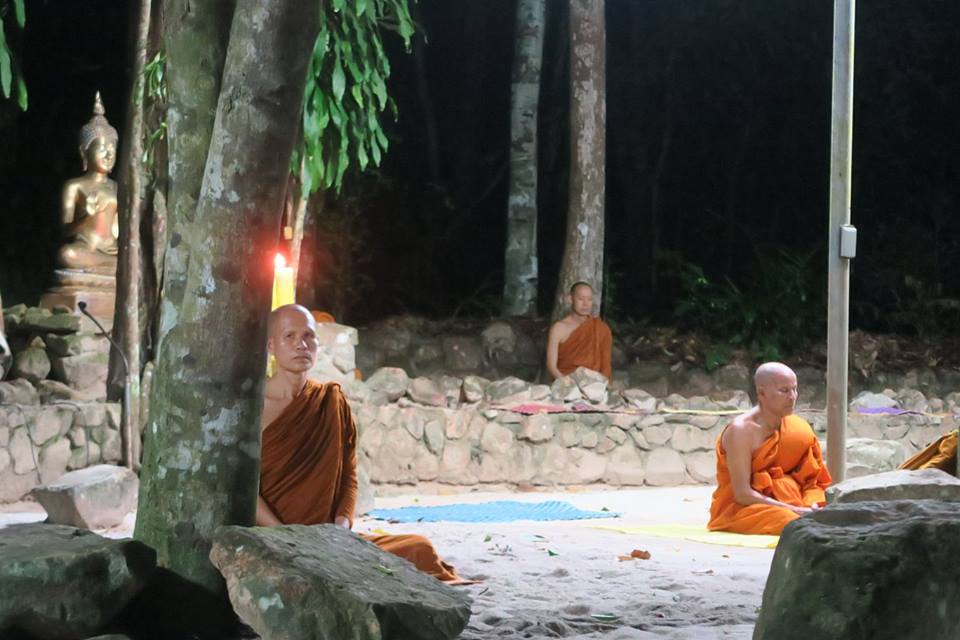 ภาพการสวดมนต์ทำวัตรเย็นและฟังปาฐกถาธรรมกัณฑ์ที่ ๓ ที่ลานหินโค้ง สวนโมกข์ไชยา เมื่อคืนวันที่ ๒๗ พค.๕๙ มีข้อสังเกตพิเศษคือ มีพระภิกษุอยู่ร่วมน้อย เนื่องจากท่านอาจารย์โพธิ์ ติดกิจที่ทีปภาวัน เกาะสมุย ต้องเดินทางจากสวนโมกข์ในช่วงบ่าย ท่านอาจารย์สุชาติ ติดบรรยายที่โรงหนังให้นักศึกษาจากมหาวิทยาลัยมหิดล บนลานหินโค้งเห็นเพียง พอจ.เมธี และ พอจ.ทวี ที่ผมรู้จักและจำได้ ทั้งนี้ พอจ.พยอม ได้มาแสดงธรรมแล้วเมื่อช่วงบ่าย นอกจากนี้ ช่วงกลางวัน พอจ.สุชาติได้แจ้งการขอลาออกจากเจ้าอาวาส และคณะสงฆ์ได้ตั้งท่านอาจารย์โพธิ์เป็นผู้รักษาการแล้ว
