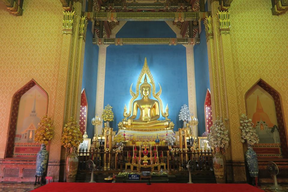 ภาพ เมื่อนำเพื่อนจากพม่าแวะนมัสการพระพุทธชินราชจำลองที่วัดเบญจมบพิตรและสวนโมกข์กรุงเทพ ในคูหาพระอุโบสถ มีภาพจิตรกรรมฝาผนัง ๘ จอมเจดีย์ของไทย เริ่มด้วยพระบรมธาตุเมืองนครที่ล้นเกล้าฯ พระบามสมเด็จพระเจ้าอยู่หัว รัชกาลที่ ๙ ทรงเป็นเจ้าภาพให้วาดถวายพระราชกุศลแด่รัชกาลที่ ๕