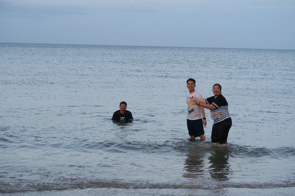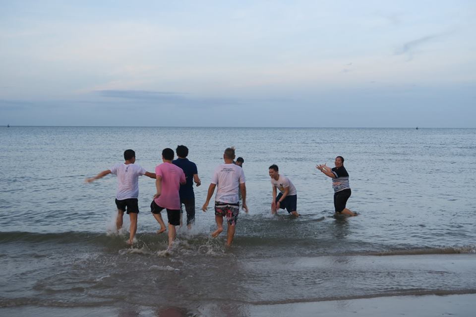 ได้ไง ? พวกเราจะยอมหัวหน้าได้ไง ก็เลยอนุญาตให้เอาของที่อาจเสียหายเมื่อเปียกออกให้หมด ก่อนที่จะถูกโยนทะเลทั้ง ๒ หัวหน้า ส่วนผมนั้น แก้ผ้า เอ้ย ผลัดผ้ากระโดดลงตั้งแต่ต้น หมดปัญหา ในขณะที่ทั้ง ๒ ต้องซักผ้ากันยกใหญ่ ฮ่า ๆ ๆ