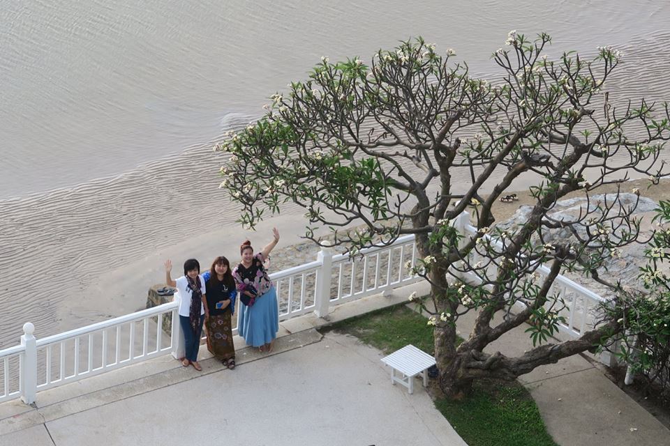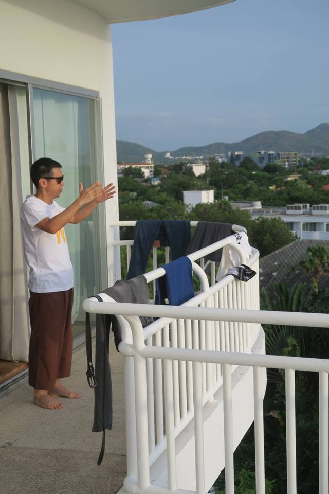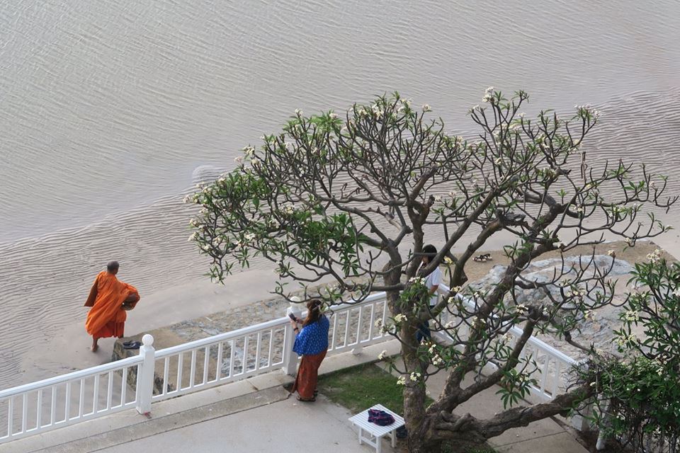 พอรุ่งเช้าที่ผมชอบตื่นมานอนอ่านหนังสือรับอรุณบนระเบียงชมวิวนั้น คุณยุทธเลือกเดินจงกรมอยู่ในห้อง มองลงไปที่หน้าหาด พี่โอ๊ะก็เดินจงกรมอยู่ มีเอกกะแฟนออกมาป้วนเปี้ยนไปด้วย แก้วกะหน่อยและก็หลายสาวแวะขึ้นมาเยือนก่อนที่จะลงไปด้านล่าง เจอป้ารัตน์มาสมทบอีกคน พอดีพระท่านมาเดินบาตร ในขณะที่แปะวิรัชยังใส่แว่นดำรำไท้เก็กรับพลังจักรวาลอยู่ยาว นอกนั้นผมไม่ได้จับภาพใคร กินเช้าก่อนออกจากโรงแรม เจอพระรูป ร.๖ กับหลายภาพวชิราวุธที่เคยอยู่เรียน จึงเก็บภาพเอามาด้วย สวยดี