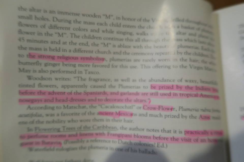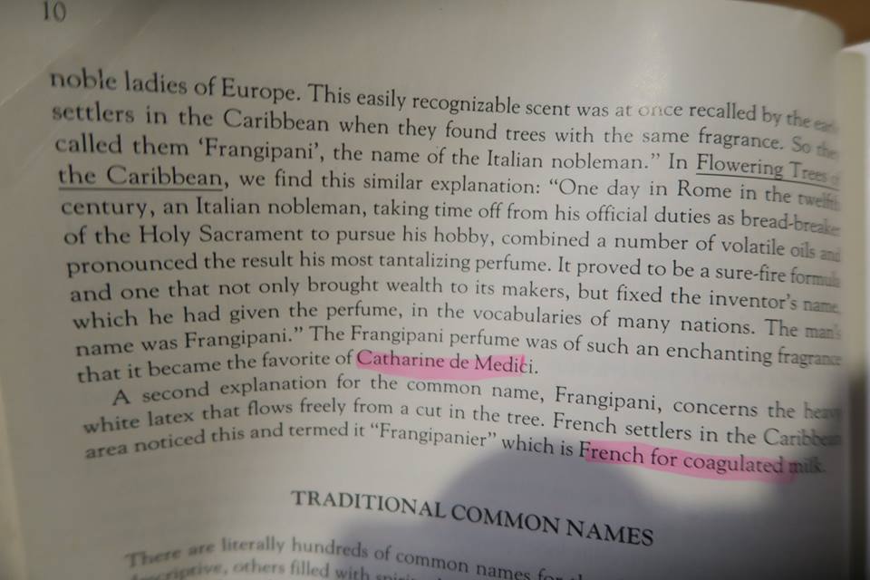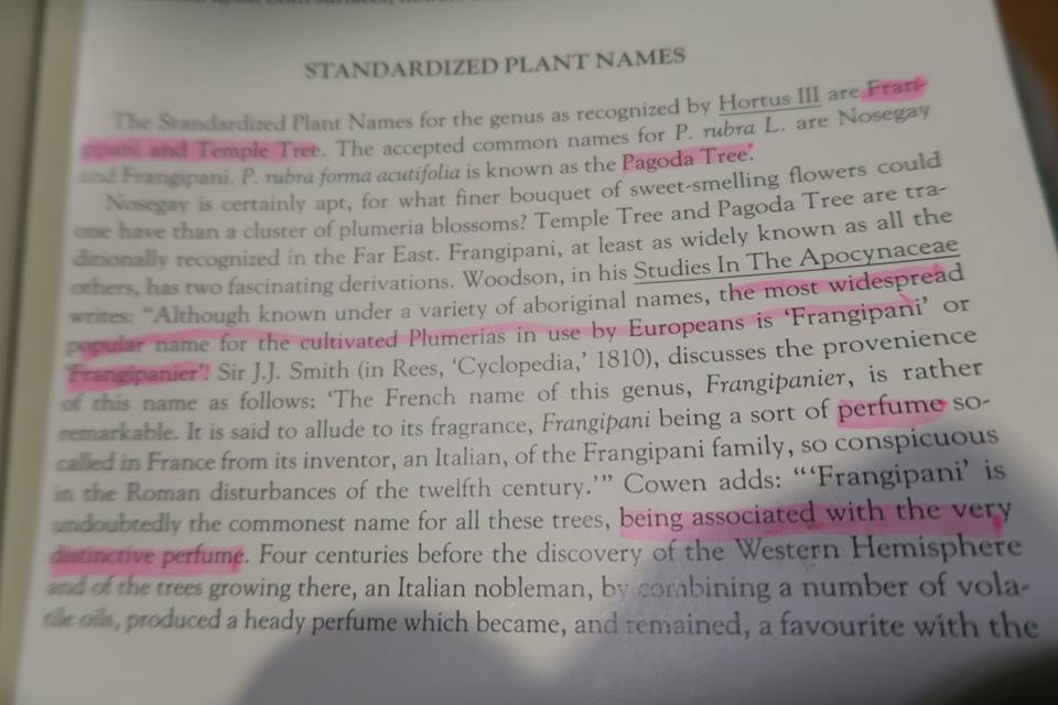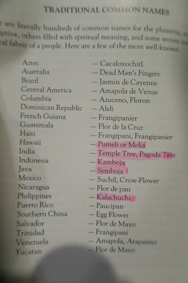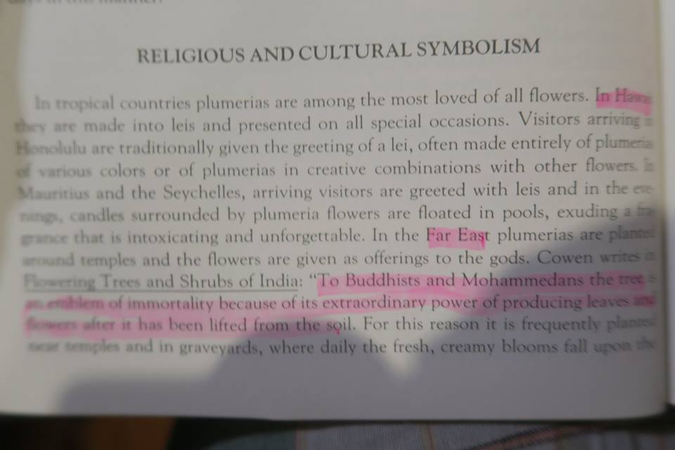 ๓) ไทยเรานั้น ทำไมนิยมแต่ในสุสานกับวัดก็น่าจะเป็นมาอย่างเดียวกัน แต่ติดกันมาที่ชื่อ ลั่นทม ซึ่งไม่มีใครรู้ที่มา อังคาร กัลยาณพงศ์ คุยกับผมว่า คำ "ลั่นทม" นั้นแปลมาจาก "ลานโทม" ในเขมร ที่มีนัยยะแห่งการสักการะบูชา แล้วไทยเรารับมาเป็นชื่อไม้นี้แล้วทำเสียงสั้น ๆ ตามที่นิยมปลูกในสุสาน เป็น "ลั่นทม" จนเหมือนกับไม้ถูกสาป จนต้องมาตั้งชื่อกันใหม่ว่า "ลีลาวดี" แล้วจึงปลูกกันใหญ่ อันที่จริงในหนังสือ Plumeria เล่มนี้ บอกว่าที่เขาชอบปลูกในวัดและสุสาน เพราะเป็นไม้วิเศษ เต็มไปด้วยพลังแห่งการฟื้นคืนชีวิต แถมทิ้งดอกหอมลงมาห่มคลุมอยู่เป็นนิจนิรันดร์
