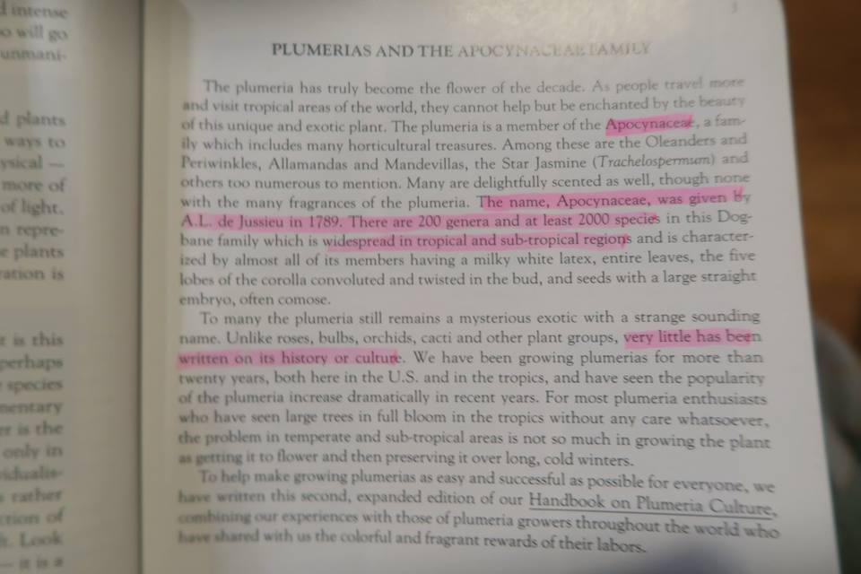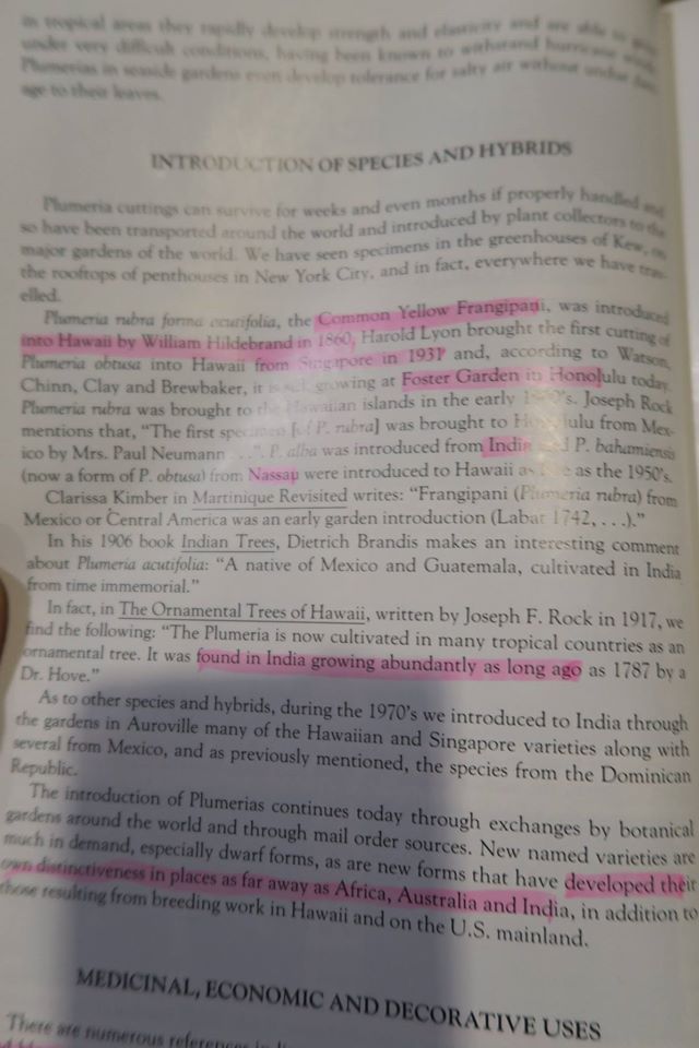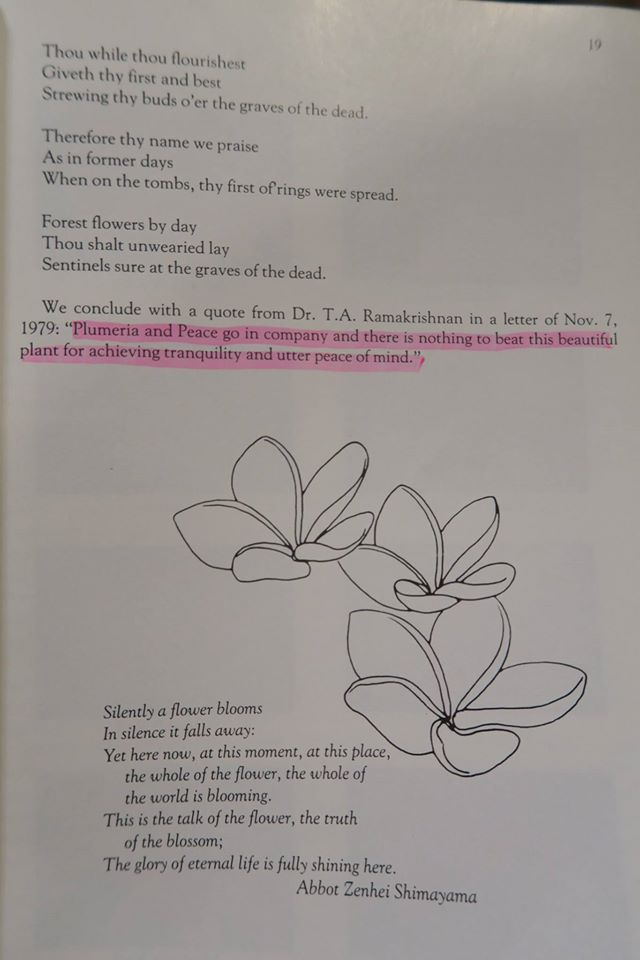 หนังสือนี้เขาสรุปสั้น ๆ ด้วยการโคว๊ทคำกล่าวของ ดร.ที เอ รามากฤษณะ เมื่อวันที่ ๗ พย.๒๕๒๒ ที่ว่า "Plumeria and Peace go in company and there is nothing to beat this beutiful plant for achieving tranquility and utter peace of mind"