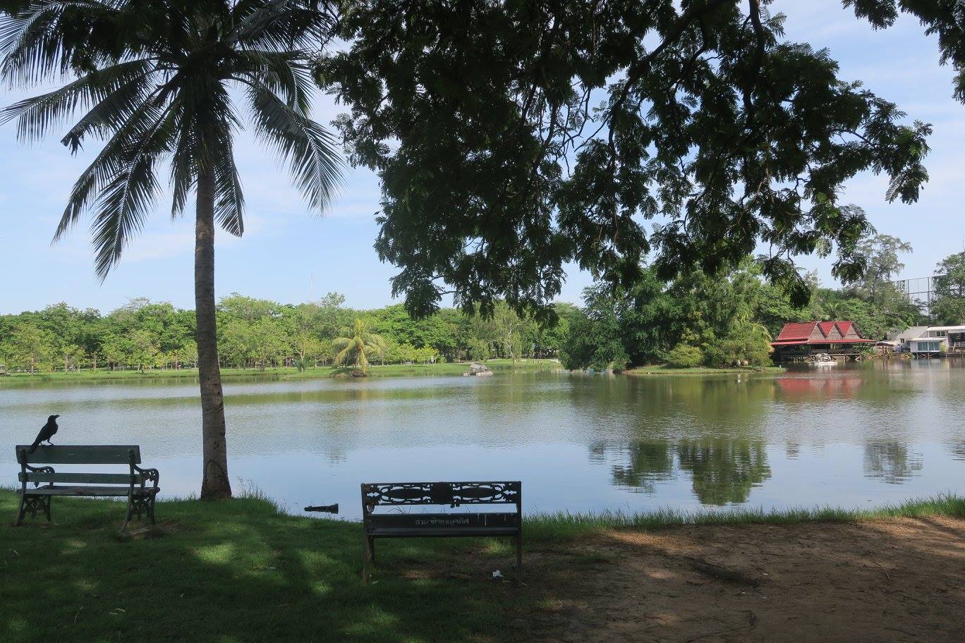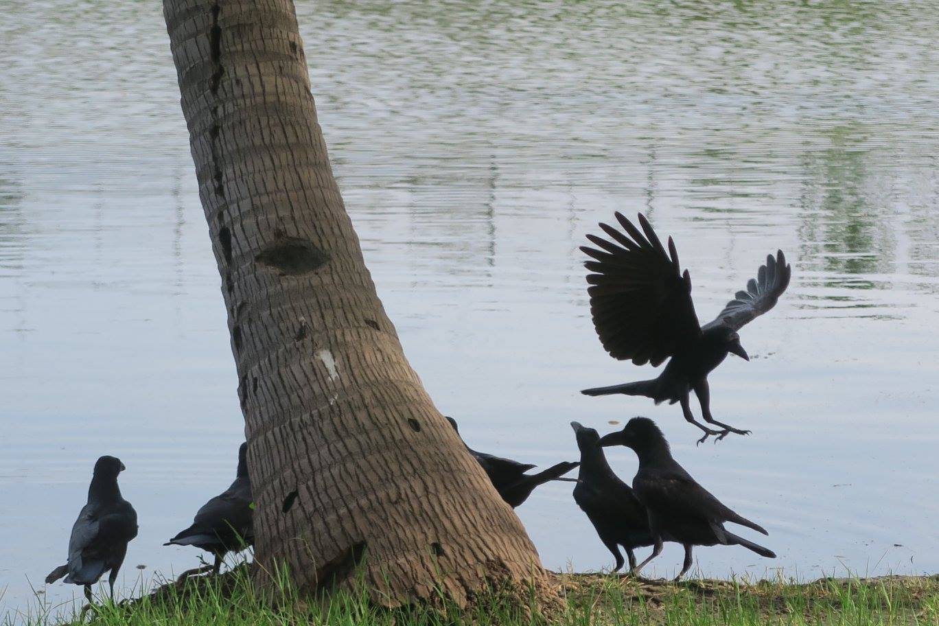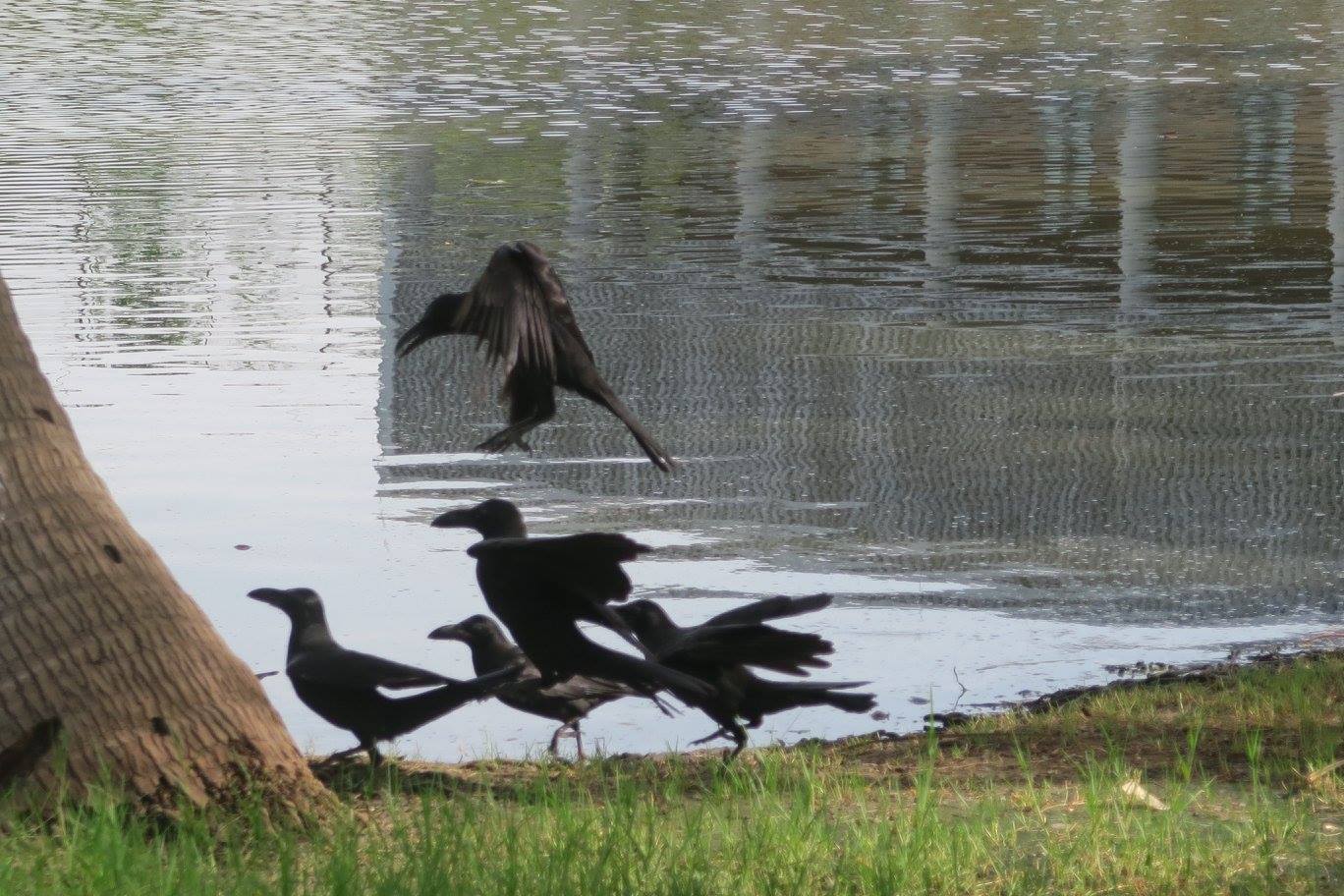 ภาพ หมู่นกที่ริมฝั่งสระนาฬิเกร์ สวนโมกข์กรุงเทพ เมื่อวันก่อนอาสาฬหบูชา ๒๕๕๙