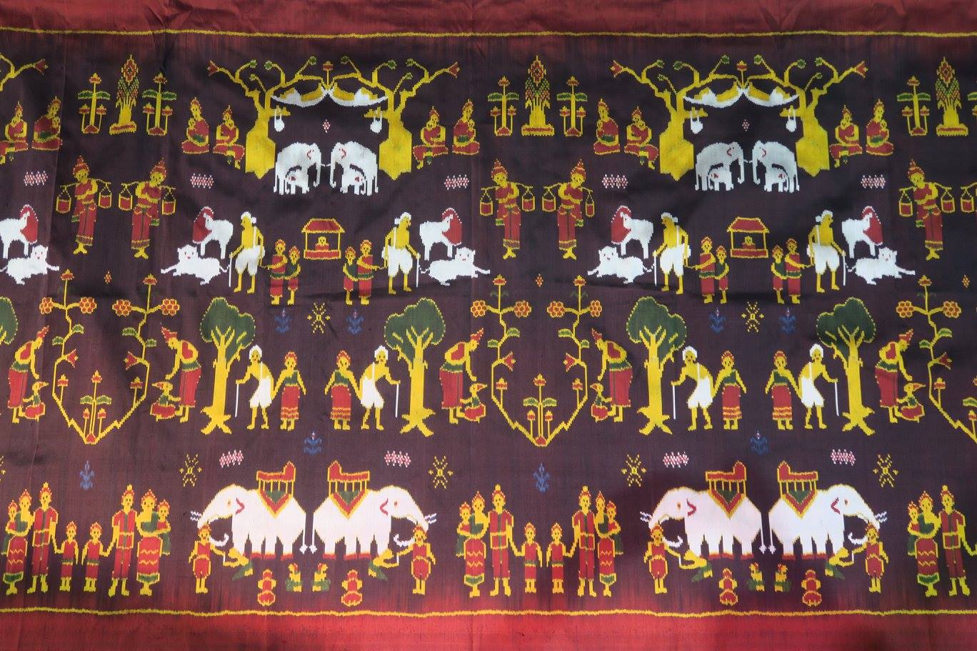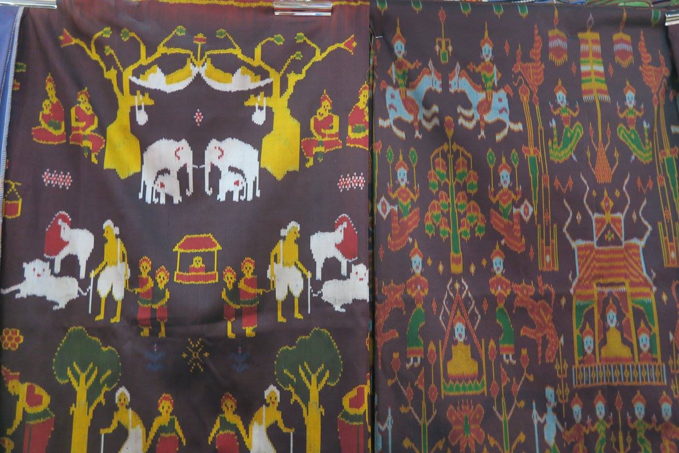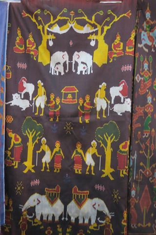 ภาพ ผ้ามัดหมี่ผะเหวด รูปและเรื่องพระเวสสันดรชาดก ๒ ผืน ที่งานศิลปาชีพ ประทีปไทย เมื่อวันที่ ๒๐ สค.๕๙ มัดลาย ย้อมไหม และทอโดย "แม่ดาวลอย จันทวงษา" แห่งกลุ่มทอผ้าไหมบ้านตาหยวด ต.ทุ่งหลวง อ.สุวรรณภูมิ ร้อยเอ็ด โทร ๐๘๙ ๙๔๒ ๗๐๑๓ มีกัณฑ์อะไรบ้าง เชิญทัศนากันเองนะครับ ใครสนใจติดต่อตรงตามเบอร์โทรนี้ได้เลย