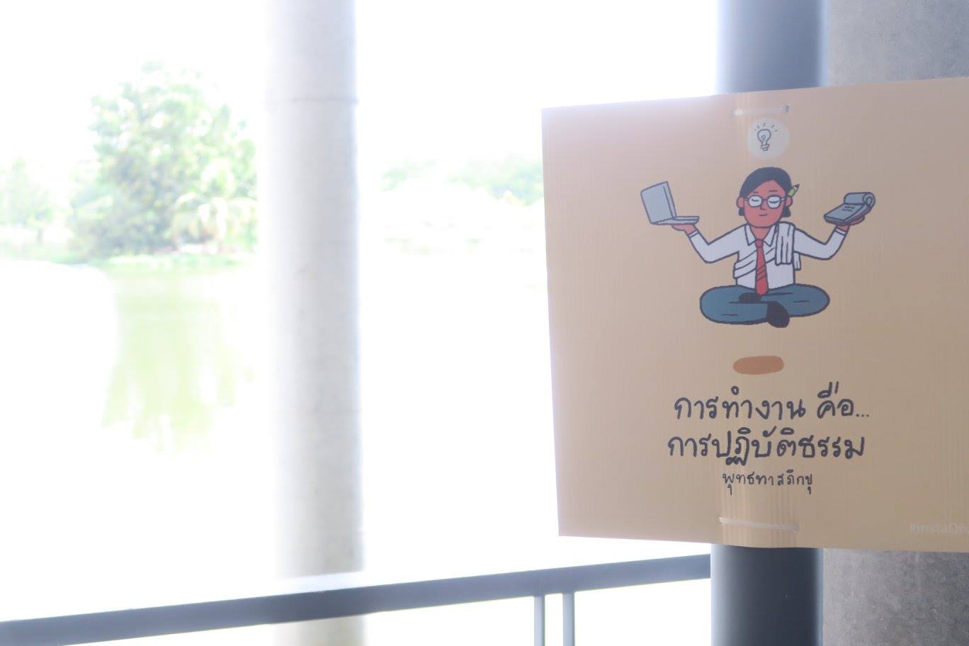 ก็ลองหาธรรมมาแถม ด้วยการทำเป็นป้ายเอาไปวางใกล้ ๆ ให้จับแล้วติดข้อธรรมที่เอาไปแถมไว้ ในขณะที่กิจกรรมต่าง ๆของทั้งหอฯ ก็ดำเนินไปตามปกติด้วยดี ทั้งเพลินธรรมนำชม อานาปานสติภาวนา และ ห้องเรียนรู้ธรรมกับกลุ่มอยู่เย็น มีเปิดธรรมบรรยายของท่านอาจารย์ที่โถงทางเดินด้วย โดยมีคนมานั่งสมาธิในห้องนิพพานไม่น้อย ที่โถงโอวาทปาฏิโมกข์ก็มีเดินจงกรม สงบงดงามดี