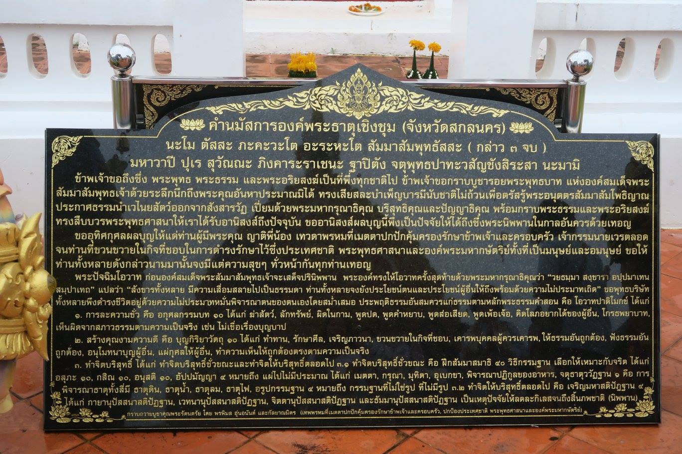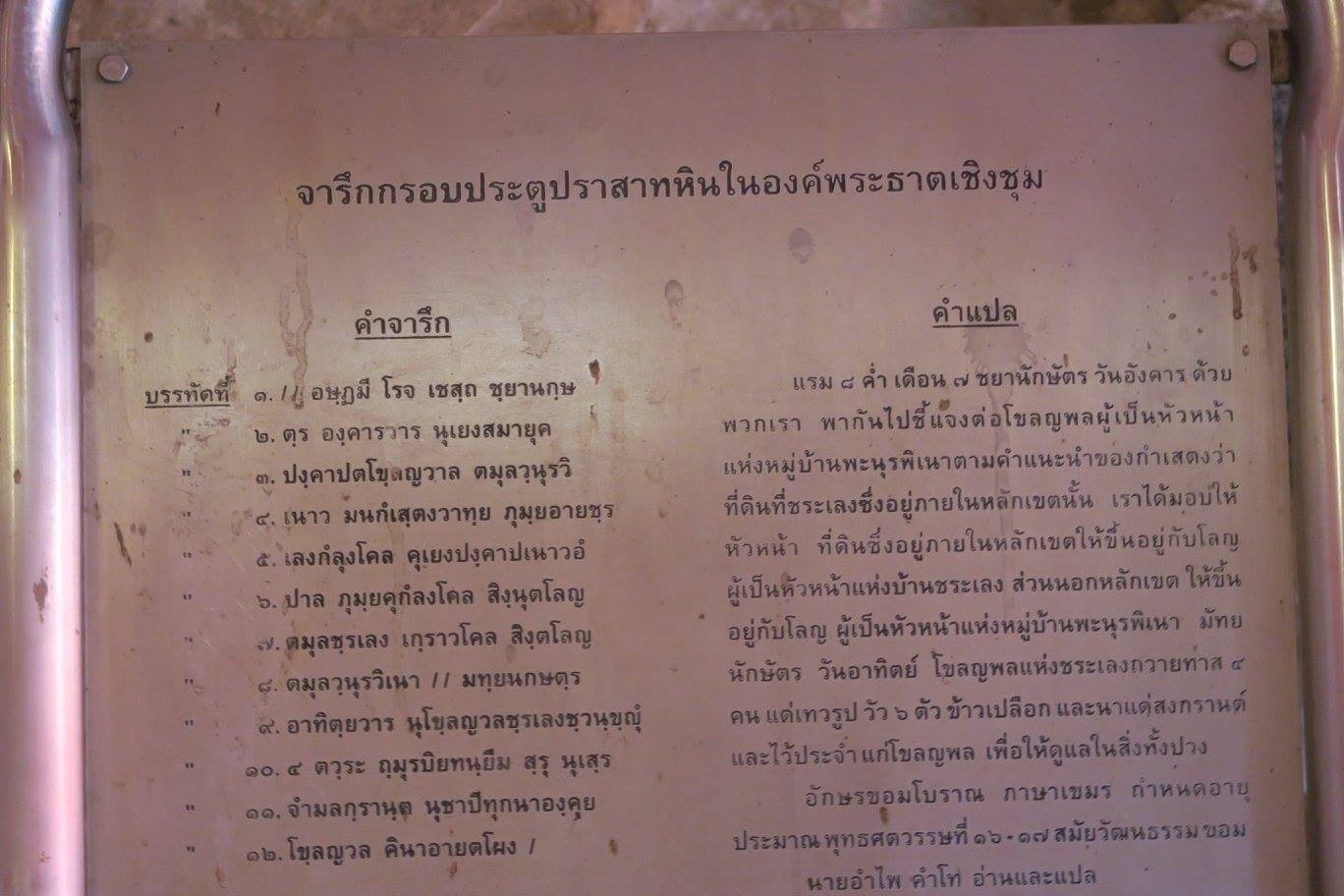 ภาพ ที่พระธาตุเชิงชุม เมื่อวันแม่ ๑๒ สค.๕๙ กับคณะบุญจาริก เที่ยวทั่วไทยให้ถึงธรรม เริ่มตั้งแต่แรกถึง กินข้าวเปียกที่วิหารคดกำแพงแก้ว แล้วเข้านมัสการองค์พระธาตุ ณ เบื้องหน้าพระองค์แสน กับในกรุองค์พระธาตุที่มีจารึกระบุไว้ ก่อนจะออกไปนมัสการรอยพระพุทธบาทจำลองในสิมเก่า ศิลปะยุโรป-ฝรั่งเศส ก่อนที่จะประทักษิณรอบศาลาการเปริญหลังใหม่ มีภาพหน้าบันพุทธประวัติกับพระพุทธเจ้า ๔ พระองค์ ในขณะที่บานหน้าต่างไม้สลักภาพพุทธประวัติสวยงามสมบูรณ์มาก สุดท้ายกับอาคารปริยัติธรรมและหอระฆังศิลปะเวียตนาม สวยดี