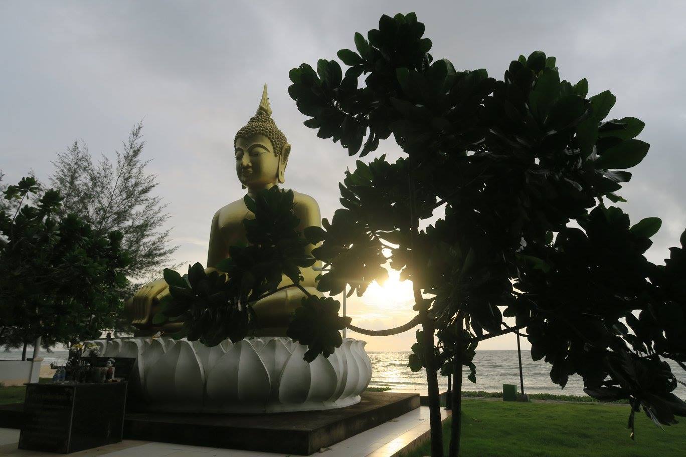 ภาพ พระพุทธรูปที่ริมหาดทางตอนเหนือสุดของชุมชนบ้านน้ำเค็ม อ.ตะกั่วป่า จ.พังงา กับคำเตือนใจน่าสนใจ "จะขออะไรจากพระองค์" และอนุสาวรีย์สมเด็จฯ กรมหลวงชุมพร เมื่อวันที่ ๒๔ สค.๕๙