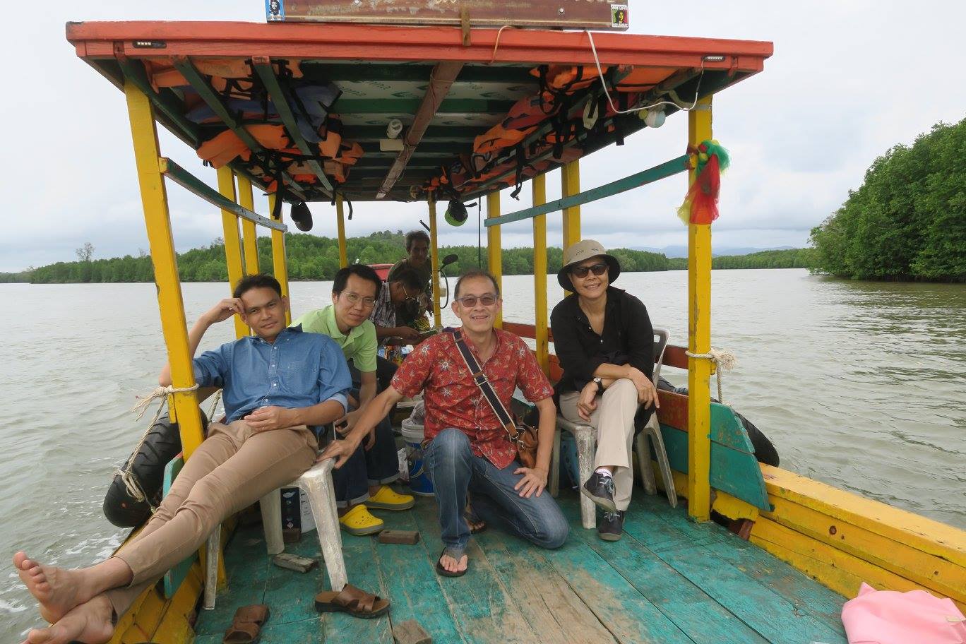 ภาพ บนเรือจาก น้ำเค็ม-เกาะคอเขา - เขาพระเหนอ-น้ำเค็ม เมื่อวันที่ ๒๔ สค. ณ ขณะแผ่นดินไหวในหลายแห่ง เพื่อซึมซับการเดินทางมาถึงของนักเดินเรือโบราณเพื่อเข้ากำบังคลื่นลมหลังเกาะคอเขา แล้วล่องเข้าปากคลองที่เขาพระเหนอที่เป็นจุดหมายตาและสถาปนาเทวสถาน ประดิษฐานพระวิษณุองค์งาม สู่บางม่วง-ตะกั่วป่าแล้วข้ามฟากไปฝั่งทะเลตะวันออกที่อ่าวบ้านดอนหรือเมืองนคร ก่อนที่จะหันหัวเรือกลับออกทะเลนอกจนพ้นหัวเกาะที่มีสันดอนทรายใหม่กำลังก่อตัวอยู่