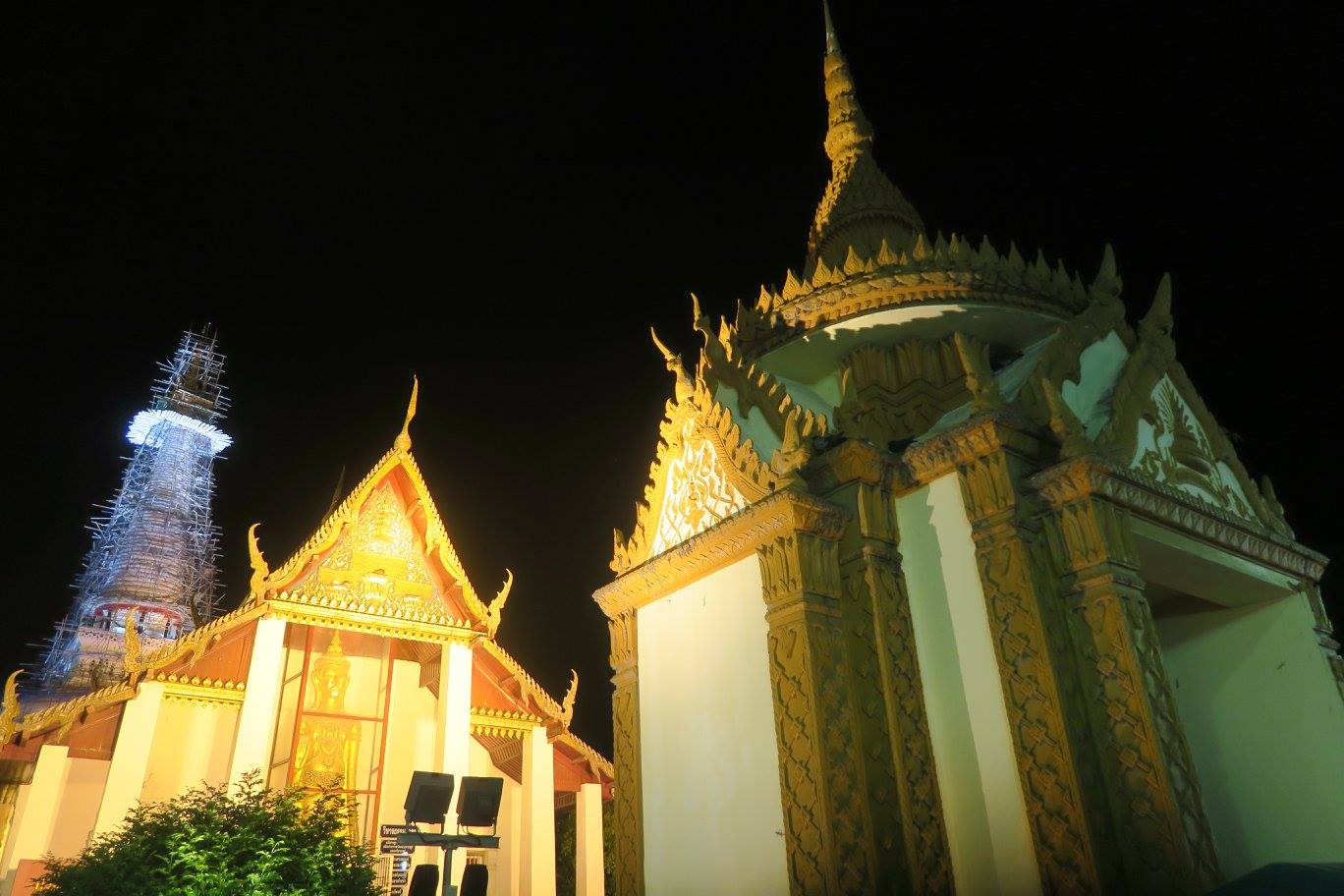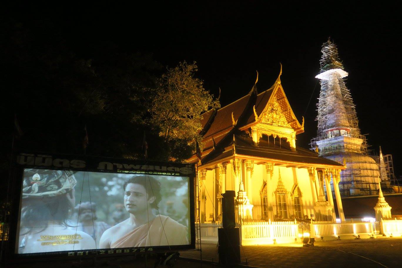 ภาพ พระธาตุเมืองนครเมื่อคืนวันที่ ๒๙ กย.ขณะกำลังฉายหนังกลางแปลงงานเดือนสิบ เรื่อง พระพุทธเจ้า บรมศาสดาโลก ตอนห้ามพระเจ้าพิมพิสารบูชายันต์ด้วยชีวิตสัตว์ใหญ่