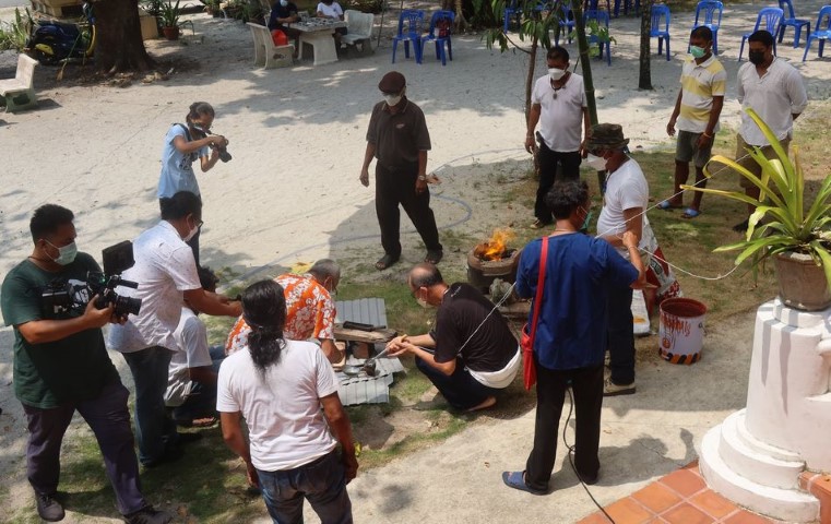 แล้วจึงเทลงอีกเบ้าเพื่อตีทำแผ่นสามกษัตริย์