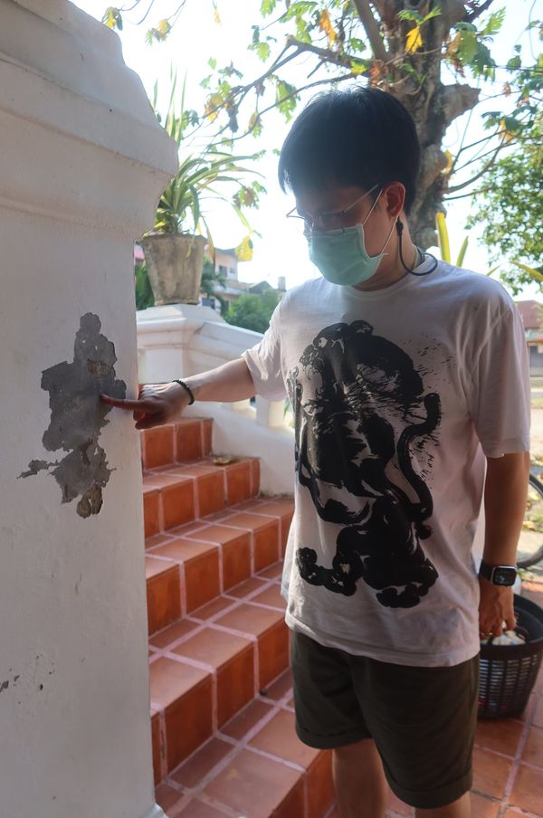 " ... ทำไมที่เขาซ่อมบูรณะถึงเป็นอย่างนี้ ไม่กี่ปีเอง สีลอกพองหมด ??? ... "