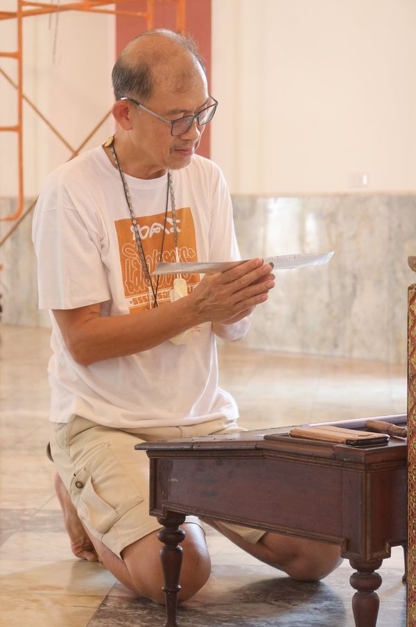 หลังจารจบ จึงอ่านอีกคำรบเพื่อถวายพระพุทธองค์เบื้องหน้า ว่า ...