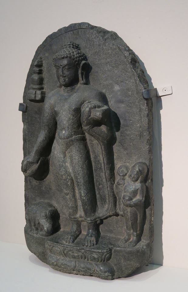 นอกจากที่ว่ากันต่อ ๆ มาว่าพ่อขุนรามให้พระเจ้าศรีธรรมาโศกราชบ้านผมไปเชิญมาจากศรีลังกา ได้ทั้งทรงสถูปแบบลังกา พระพุทธสิหิงค์เมื่อ ๗ - ๘๐๐ ปีก่อน บ้างว่ามาตั้งแต่สมัยพระเจ้าอโศกมหาราชที่ส่งพระโสณะ พระอุตตระมายังสุวรรณภูมิเมื่อ ๒,๐๐๐ กว่าปีก่อน แต่ที่แน่นอนคือพบหลักฐานการสถาปนาพระพุทธศาสนาอยู่เต็มประเทศไทยและเอเซียอาคเนย์อย่างน้อยก็สมัยทวารวดีเมื่อ ๑,๕๐๐ ปีก่อน จนเมื่อผมหลงเข้าดงลูกปัดแล้วจึงได้พบร่องรอยพระพุทธศาสนาจากลูกปัดมากมายรวมทั้งจี้ห้อยแขวนคอ "ตรีรัตนะ" และอื่น ๆ รวมทั้งรูปสัตว์ต่าง ๆ ที่เป็นที่นิยมของชาวพุทธโบราณในอินเดียเมื่อ ๒,๐๐๐ กว่าปีที่แล้ว ก่อนที่จะมีการสร้างทำพระพุทธรูป เกิดเป็นพยานหลักฐานชุดใหม่ที่อาจารย์ศรีศักร วัลลิโภดมบอกว่าเป็นการอุดช่องโหว่ทางประวัติศาสตร์หลายศตวรรษหรือที่อาจารย์เอียน โกลฟเวอร์บอกว่าเป็นการ filling the Dvaravati Gap ที่ว่างอยู่ ลองดูสิ่งที่ ACM ขนมาแสดงจากอินเดีย ซึ่งน่าจะค่อย ๆ คลี่ความเข้าใจในรอยทางพระพุทธศาสนาจากอินเดียถึงไทยผ่านสิ่งเหล่านี้ได้ไม่น้อยนะครับ เริ่มจากเศียรพระพุทธรูปและพระโพธิสัตว์สมัยคันธาระ แล้วก็พระพุทธรูปสมัยมถุราที่ถือเป็นอีกลักษณะพิเศษในรุ่นแรก ๆ มักทำด้วยศิลาทรายสีแดงที่เรียกว่าชุนนาร์ ต่างจากคันธาระที่นิยมหินชิสต์สีเทาดำ จากนั้นในสมัยคุปตะก็มาเป็นหินทรายคล้าย ๆ ที่ทำกันในประเทศไทย โดยคันธาระและมถุรานั้นอยู่ทางอินเดียตะวันตกเฉียงเหนือ ในขณะทีคุปตะนั้นแผ่กว้างเกือบทั่วอินเดีย ถือเป็นช่วงสมัยที่พระพุทธศาสนารุ่งเรืองและขยายทั่วอินเดียเทียบเท่าสมัยพระเจ้าอโศกมหาราช มีฐานะสำคัญอยู่ที่สารนาท และหลายฝ่ายถือว่าพระพุทธรูปศิลปะนี้เป็นต้นแบบนิยมของไทยและเอเซียอาคเนย์ โดยเฉพาะศิลปะทวารวดี สมัยนี้พระพุทธศาสนาในอินเดียเป็นมหายานแล้ว แต่ของไทยส่วนใหญ่เป็นเถรวาท ถัดมาในสมัยปาละ ที่มีฐานใหญ่ไปอยู่ที่นาลันทา พุทธคยา ก็เริ่มมีพระพุทธรูปโลหะและกลายเป็นวัชระ-ตันตระยานแล้ว รวมทั้งมีพระพิมพ์ดินเผาด้วย พระโลหะ นิทรรศการนี้มีพระพุทธรูปงาม ๆ จากพิหาร และบังคลาเทศ ที่น่าสนใจและไม่ค่อยได้ดูที่ไหนหลายองค์ทีเดียว แต่ดูแล้วชักเสียว นึกถึงประเทศไทยทุกวันนี้ที่สร้างทำและค้าพระกันจนน่าตกใจจนอดระลึกถึงที่ท่านอาจารย์พุทธทาสย้ำไว้ว่าอย่าให้พระพุทธรูปบังพระพุทธเจ้า รวมทั้งที่ท่านตามไปศึกษาถึงอินเดียเมื่อ ๖ - ๗๐ ปีก่อน จนพบหลายหลักฐานอย่างชัดเจนว่าแต่ก่อนในสมัยพระเจ้าอโศก สุงคะ สาตวาหนะและต้นอมราวดี ยังไม่มีการสร้างท