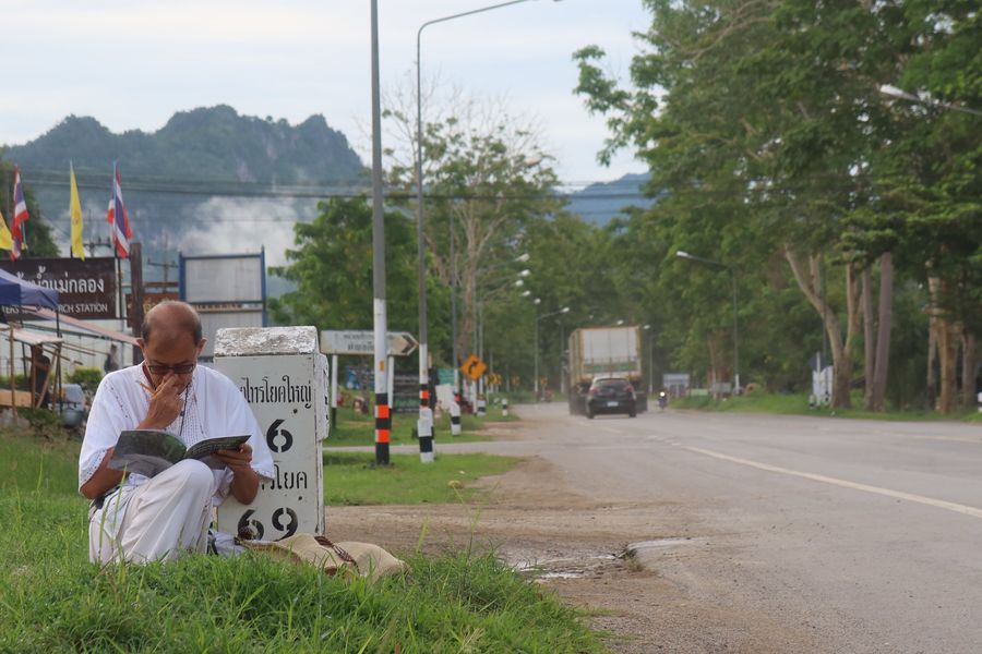 อยากดูว่าพระท่านไปถึงไหน ก็เลยเลือกนั่งตรงหลักกิโลดูชัดดี