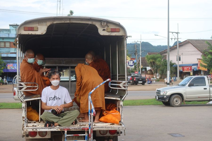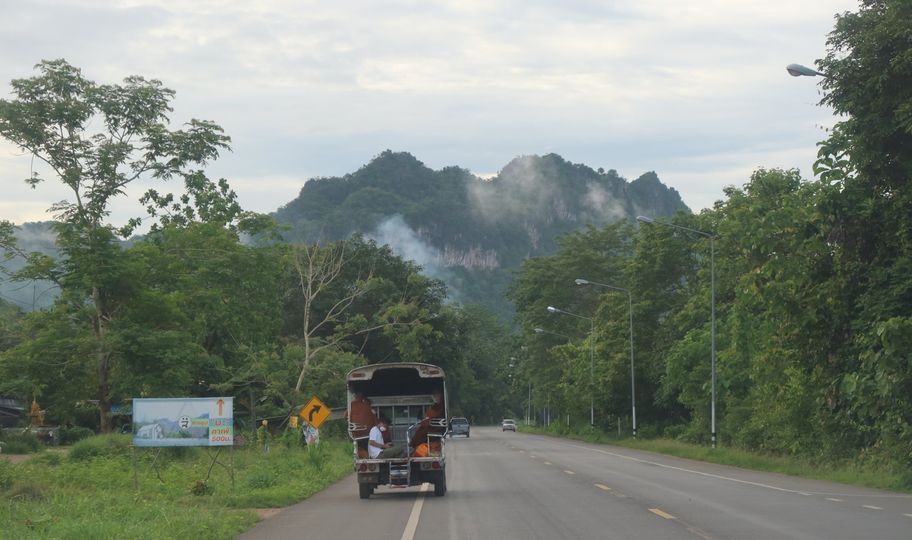 ระหว่างกลับจากไปตามพระท่านบิณฑบาตที่ทางไปทองผาภูมิที่ไทรโยค
