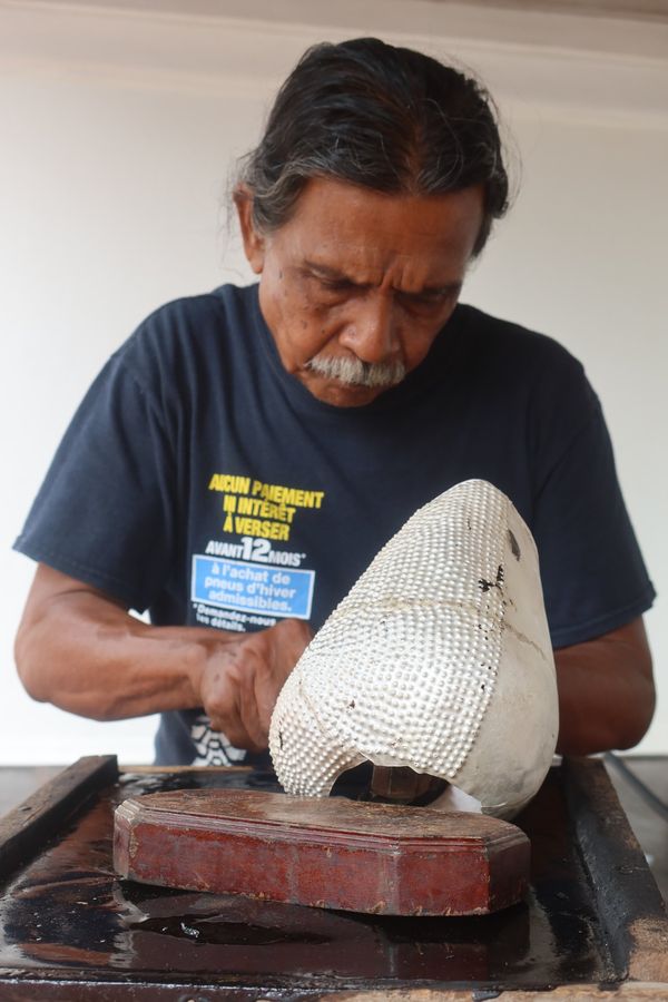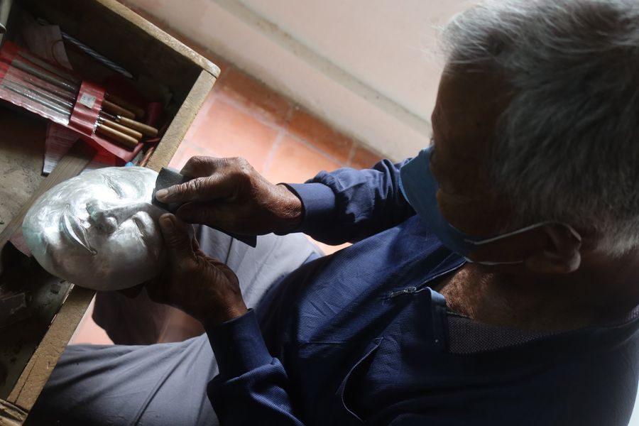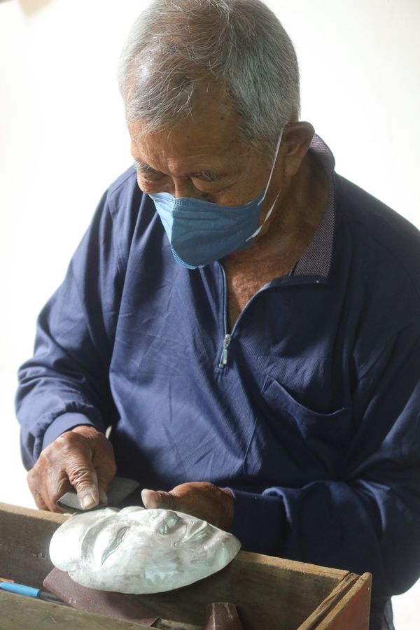 สองช่างหลักที่เป็นโต๊ะกับบัง กำลังขมักเขม่น ตอกขัดแต่งกัน