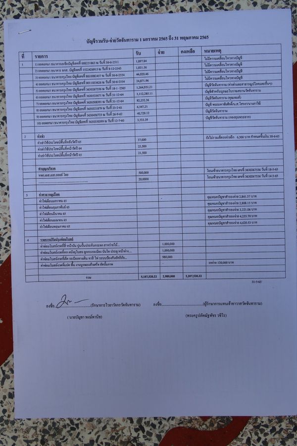 วันนี้ ปิดบัญชีส่งมอบถวายท่านเจ้าวัดแล้ว