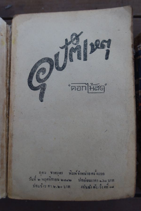 เล่มนี้ อุบัติเหตุ พิมพ์ครั้งที่ ๑ เมื่อปี ๒๔๘๒ เล่มละตั้ง ๒.๒๐ บาท