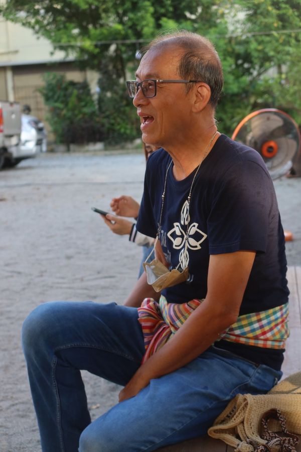ใส่บาตรกันแล้วก็นั่งคุยกันบนลานวัดนี่นั่นโน่น